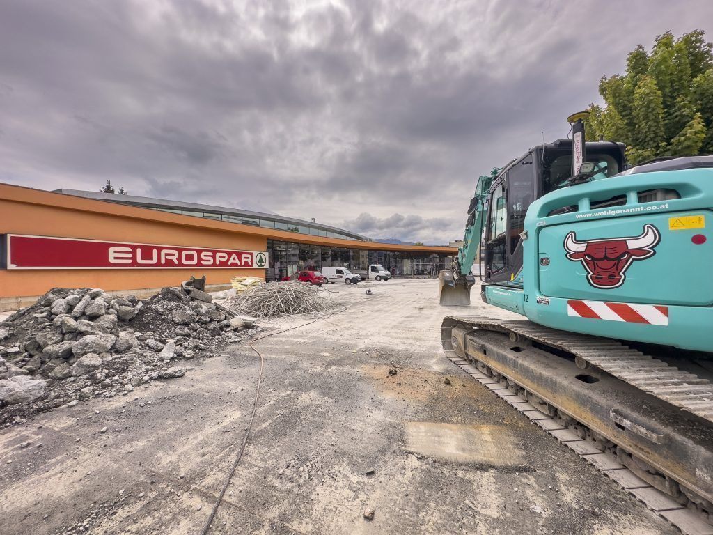 18.05.2023 Gebaut wird schon am großen Parkplatz des Rheincenters. “Das läuft separat”, heißt es von Spar.