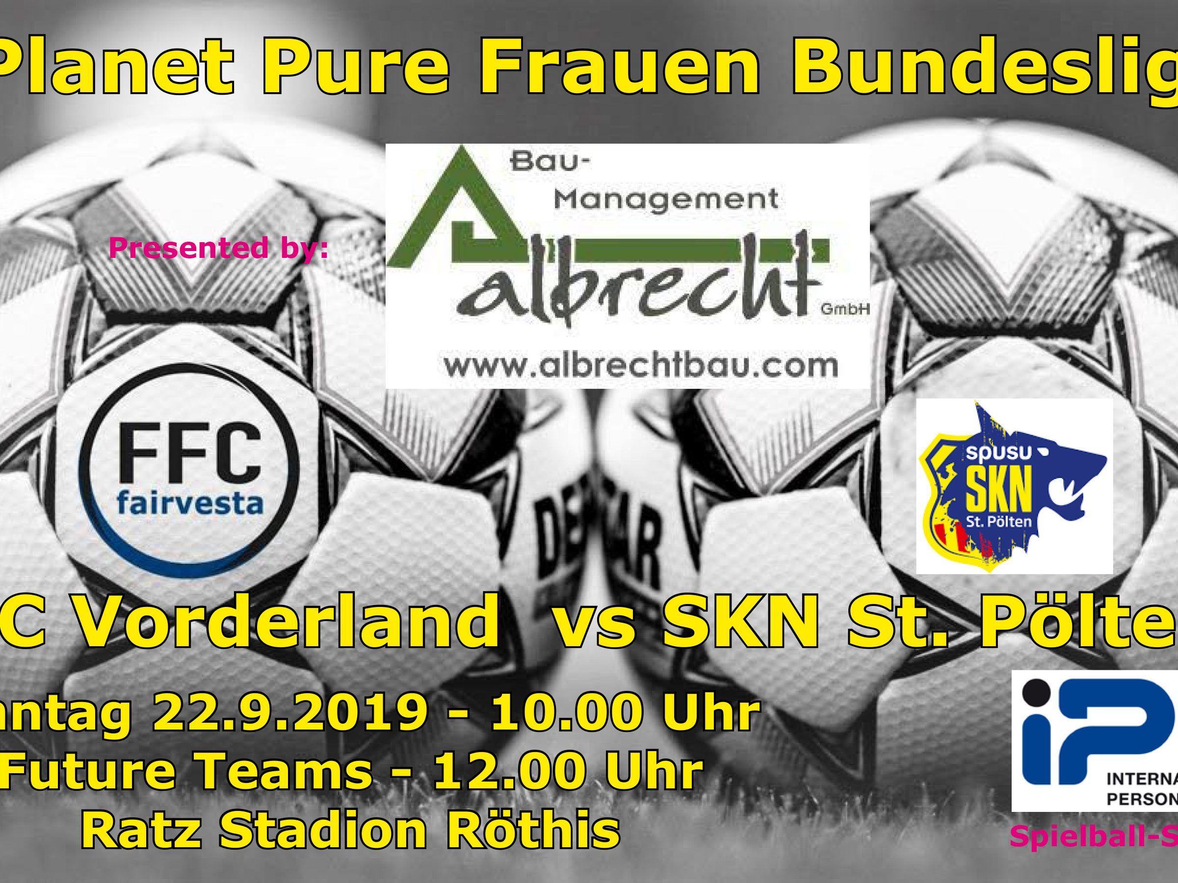 19.09.2019 In Runde 5 der Planet Pure Frauen Bundesliga 2019/20 hat der FFC Fairvesta Vorderland am Sonntag den 22.09.2019, den SKN ST. Pölten zu Gast.