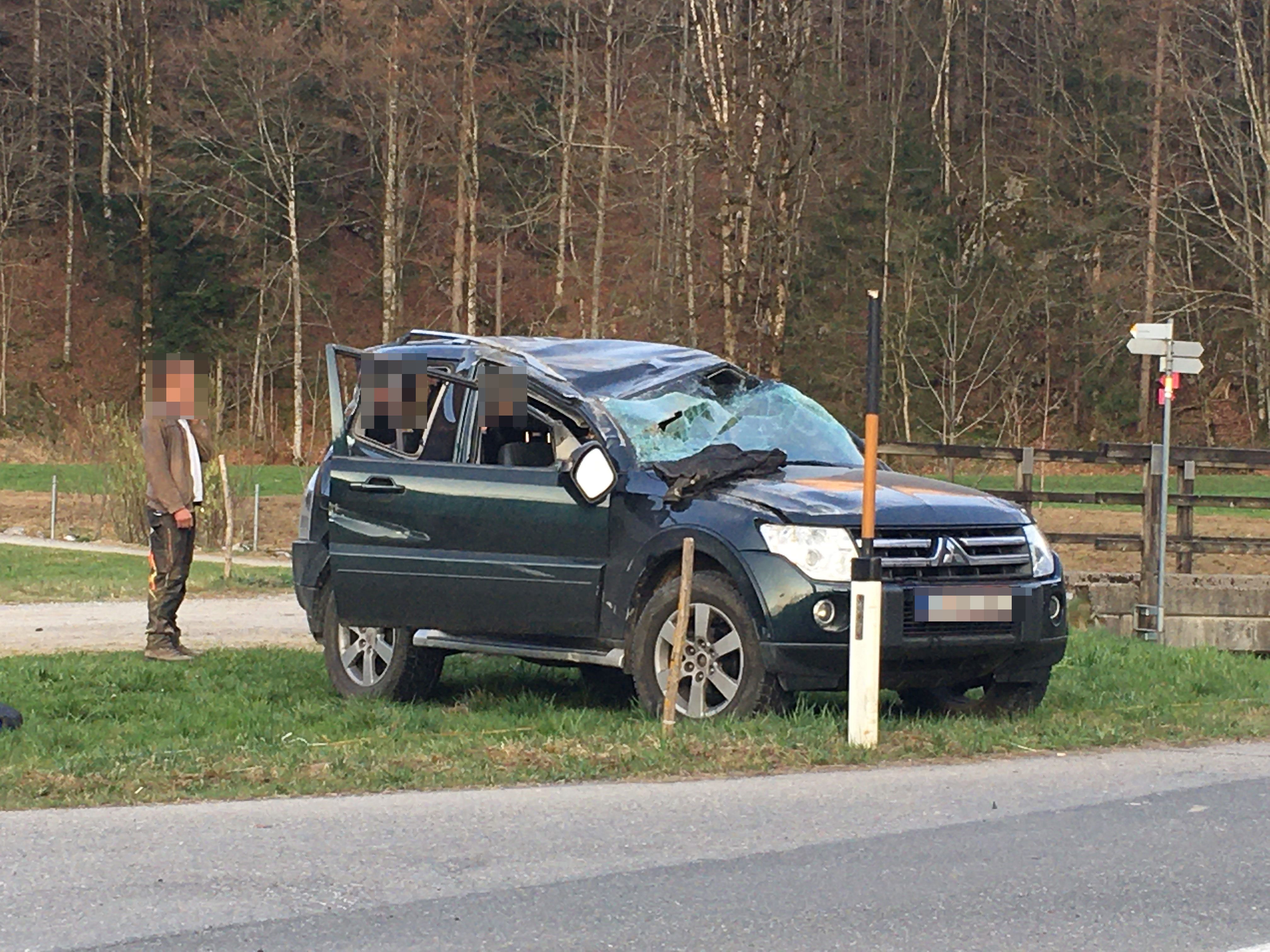 Verkehrsunfall in Schnepfau: Pkw landet auf Dach