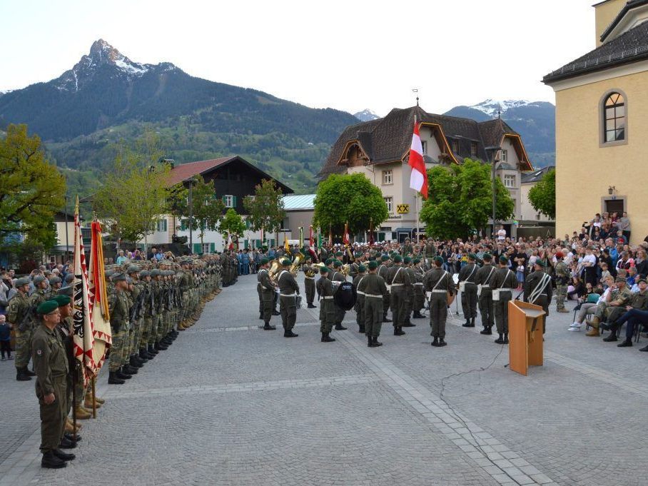 2.05.2025 Schruns “Heer on Tour” hieß es neulich in der Marktgemeinde Schruns. In einer mehrstündigen Leistungsschau am Sternenparkplatz zeigte das Hochgebirgs-Jägerbataillon 23 seine moderne Ausrüstung der Gebirgssoldaten im Sommer und Winter, sein modernes Universalfahrzeug „BVS10 Hägglunds“ sowie sein Funkfahrzeug „Noriker“. Am Abend desselben Tages wurden bei einer der größten Angelobungen des Jahres 120 Rekruten der Einrückungsturnusse