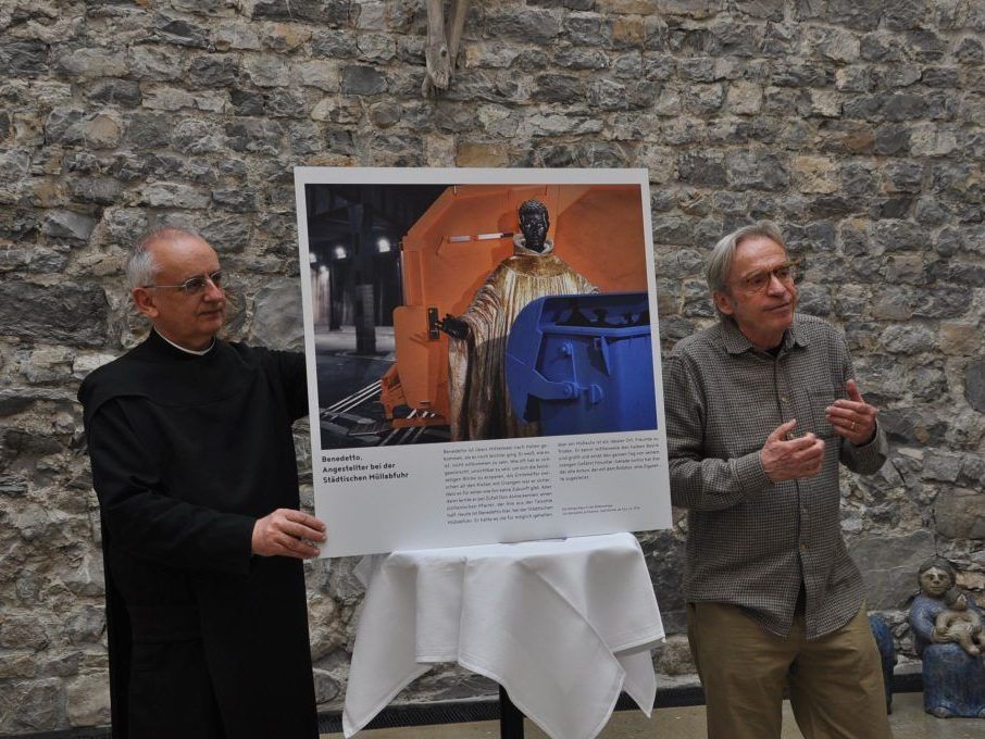 8.04.2025 Daniel Lienhard hat Heiligenstatuen gesammelt und in Arbeitsplatz-Szenen einmontiert.