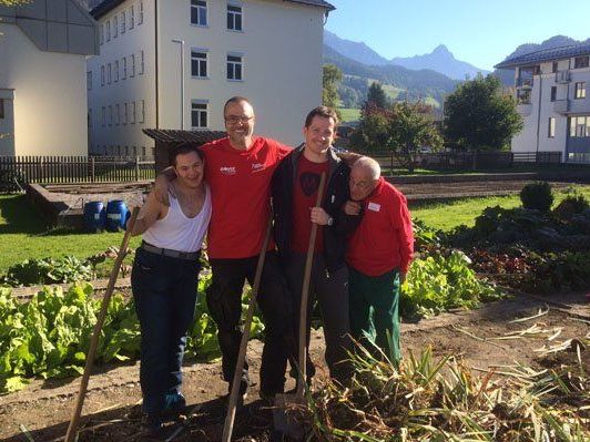 „Es war eine besondere Erfahrung, wir hatten ganz viel Spaß miteinander, haben gearbeitet, gelacht und auch ein wenig getratscht.“ Helmut arbeitet normalerweise bei der Firma Modelez. Doch einen Tag lang hat er seine Arbeitsstätte in den Garten der Werkstätte Bludenz der Caritas Vorarlberg verlegt. Dort hat er gemeinsam mit weiteren ArbeitskollegInnen und Menschen mit Beeinträchtigung aus der Werkstätte den Garten auf Vordermann gebracht. Es wurden Beete umgegraben, eingesäumt, Bäume und Büsche zurückgeschnitten, gejätet und Hackschnitzel verteilt.
