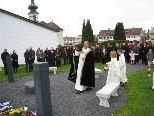 Für Bürgermeister Xaver Sinz war es deshalb ein persönliches Anliegen, in diesem Sinne mit einem Gemeinschaftsurnengrab frühzeitig Vorsorge zu treffen und damit auch auf die Wünsche aus der Bevölkerung zu reagieren. Theologisch begleitet durch Pfarrer Gerhard Mähr wurde die Idee dieses Gemeinschaftsgrabes im Freibereich bergseitig der Friedhofskapelle umgesetzt. Mitarbeiter des gemeindeeigenen Wirtschaftshofes, die Baufirma Stephan Schnetzer, die Steinmetzmeister Norbert und Katja Troy und der heimische Künstler Hans Sturn schufen hier gemeinsam eine Grabstätte, einen kleinen Garten des ewigen Friedens, einen Ort der Besinnung und der Ruhe.