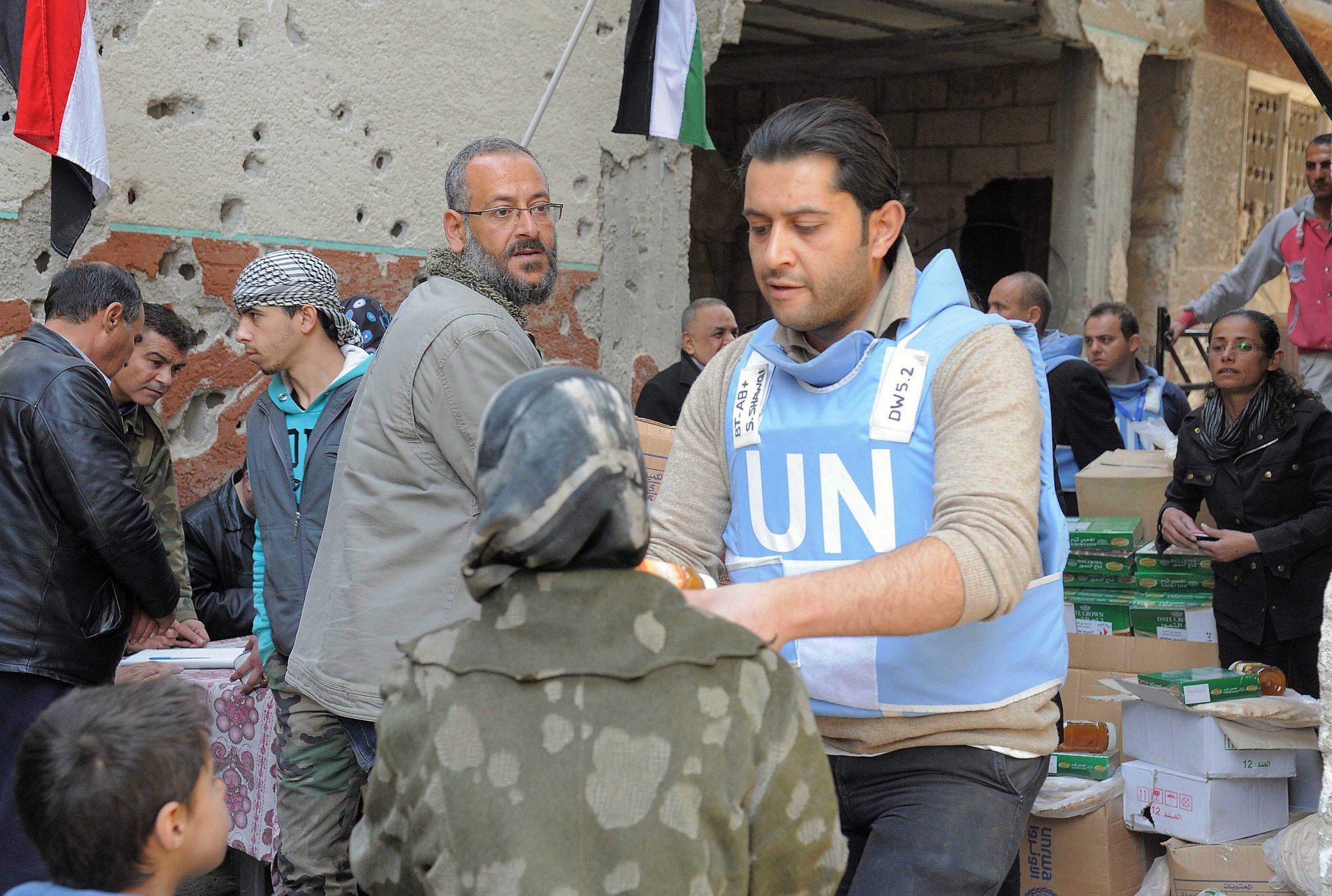 10. Februar 2014: Ohne Hoffnung auf einen baldigen Durchbruch beginnt die zweite Runde der syrischen Friedensverhandlungen in Genf. Am selben Tag verteilen Helfer Hilfsgüter in der syrischen Stadt Homs.