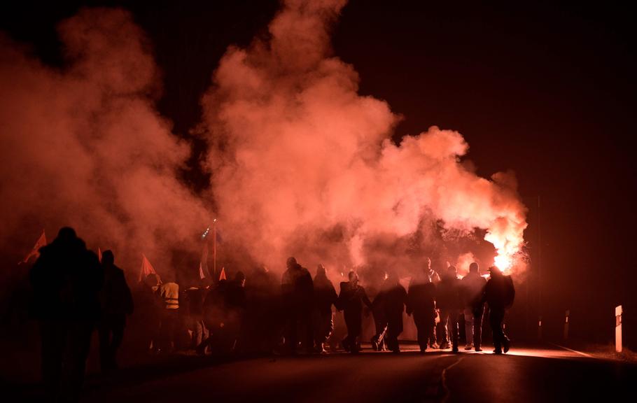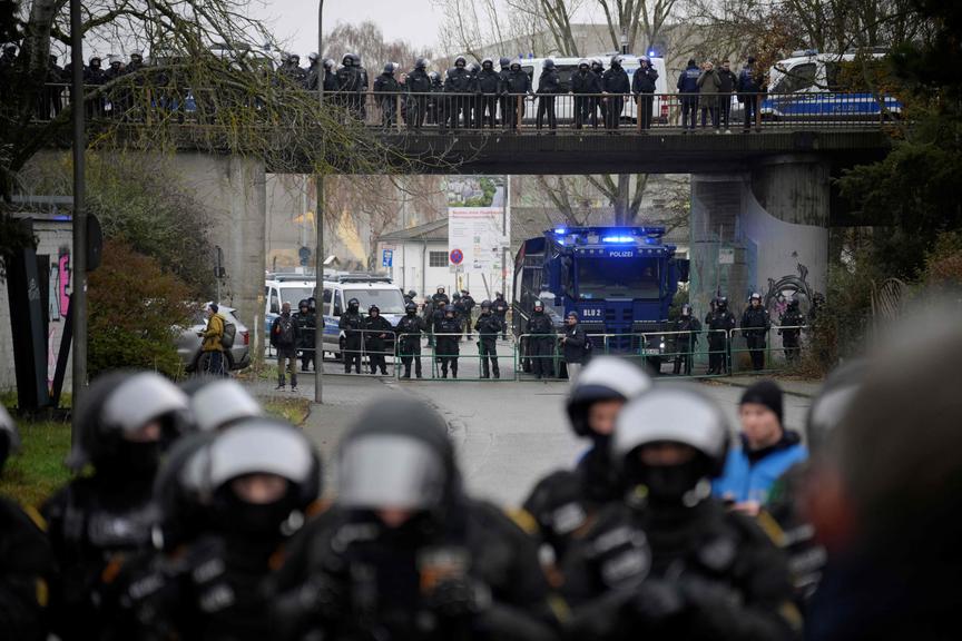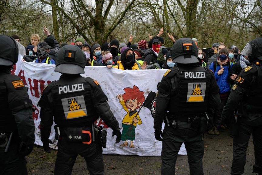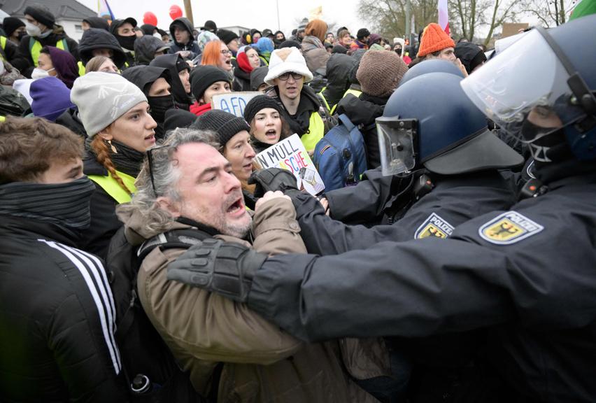 Zahlreiche Demonstranten versuchten laut Polizei, eine Polizeiabsperrung an einem Umspannwerk vor Gießen zu durchbrechen. Einsatzkräfte hätten das weitere Vordringen verhindert, dabei sei ein Beamter leicht verletzt worden. Teils seien Polizisten mit Steinen beworfen worden. Eine Sprecherin sprach von einer "aktiven Lage mit vielen verschiedenen Schauplätzen" in der Stadt.