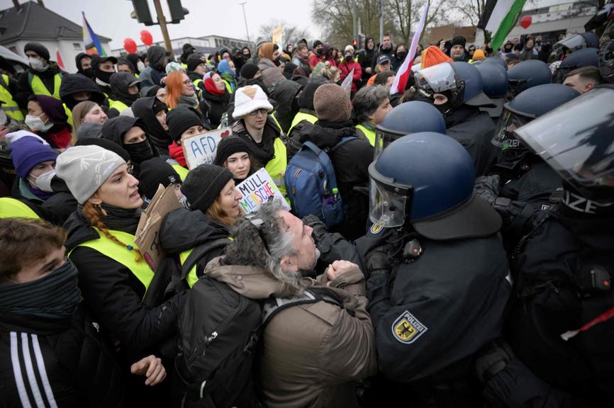 Gewalt, Blockaden, Wasserwerfer: Massenprotest gegen AfD in Gießen