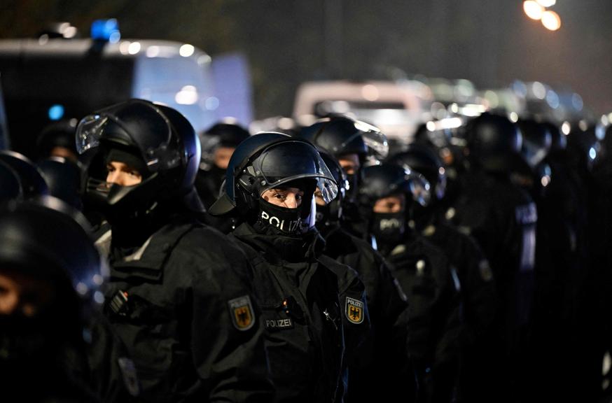 Die Polizei war mit einem Großaufgebot und Beamten aus zahlreichen deutschen Bundesländern im Einsatz, auch weil im Vorfeld Gewaltaufrufe aus der linken Szene kursierten - die Deutsche "Bild" berichtet am Samstavormittag von 6.000 Beamten, die im Einsatz seien. An einer Blockade hätten sich Beamte mit Pfefferspray gegen Steinewerfer verteidigt, ein Polizist sei leicht verletzt worden, teilte die Polizei weiter mit. Beim Stadtteil Lützellinden beschädigten Protestierende geparkte Fahrzeuge und Straßenlaternen. An einem Kreisverkehr in der Stadt blockierte laut Polizei ein Bus mit daran angeketteten Aktivisten den Weg.