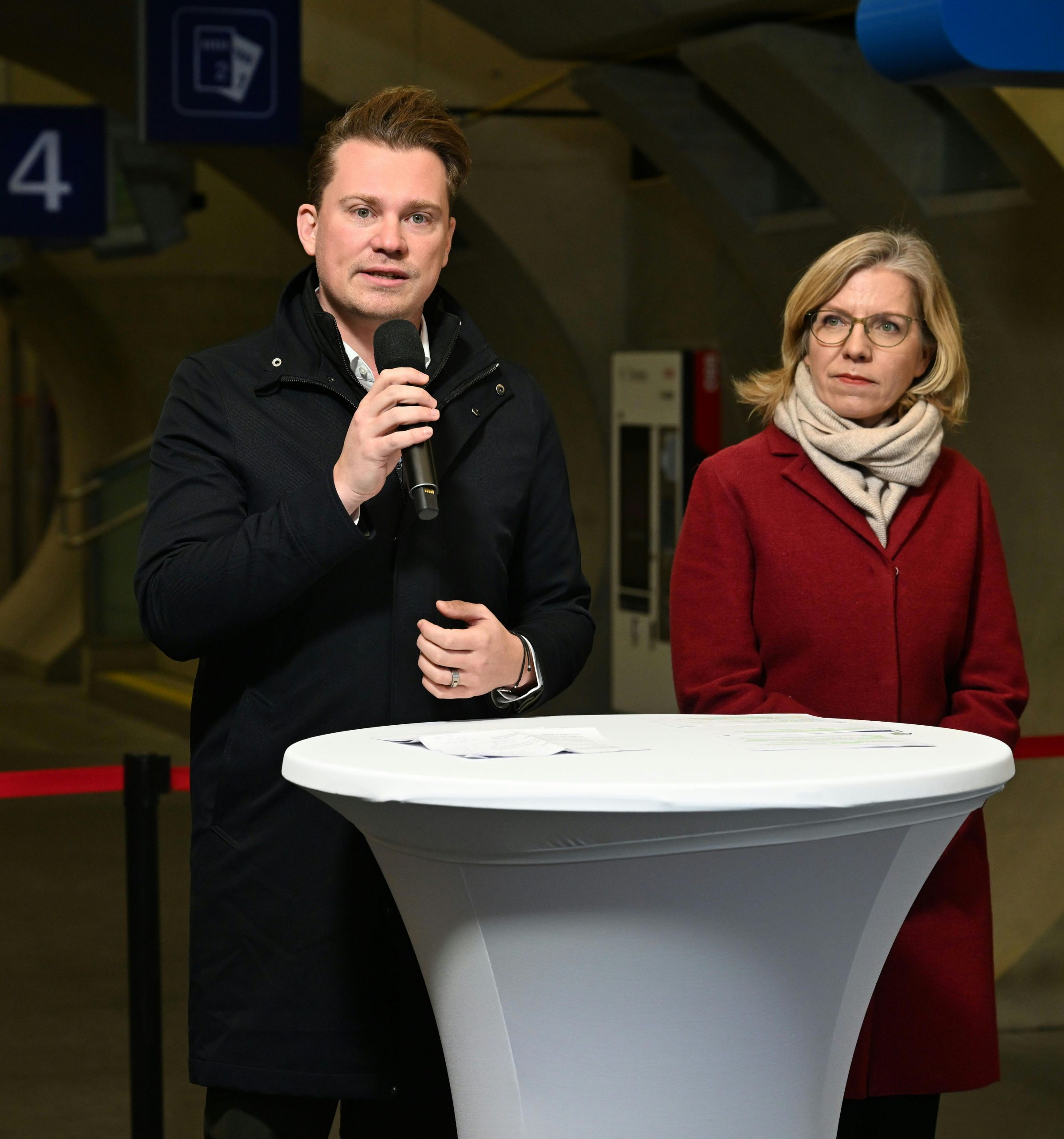 Landtagsabgeordneter Florian Krumböck (ÖVP) und Umweltministerin Leonore Gewessler (Grüne) im Rahmen einer PK ÖBB zum Thema "Wiederinbetriebnahme Weststrecke" ©APA