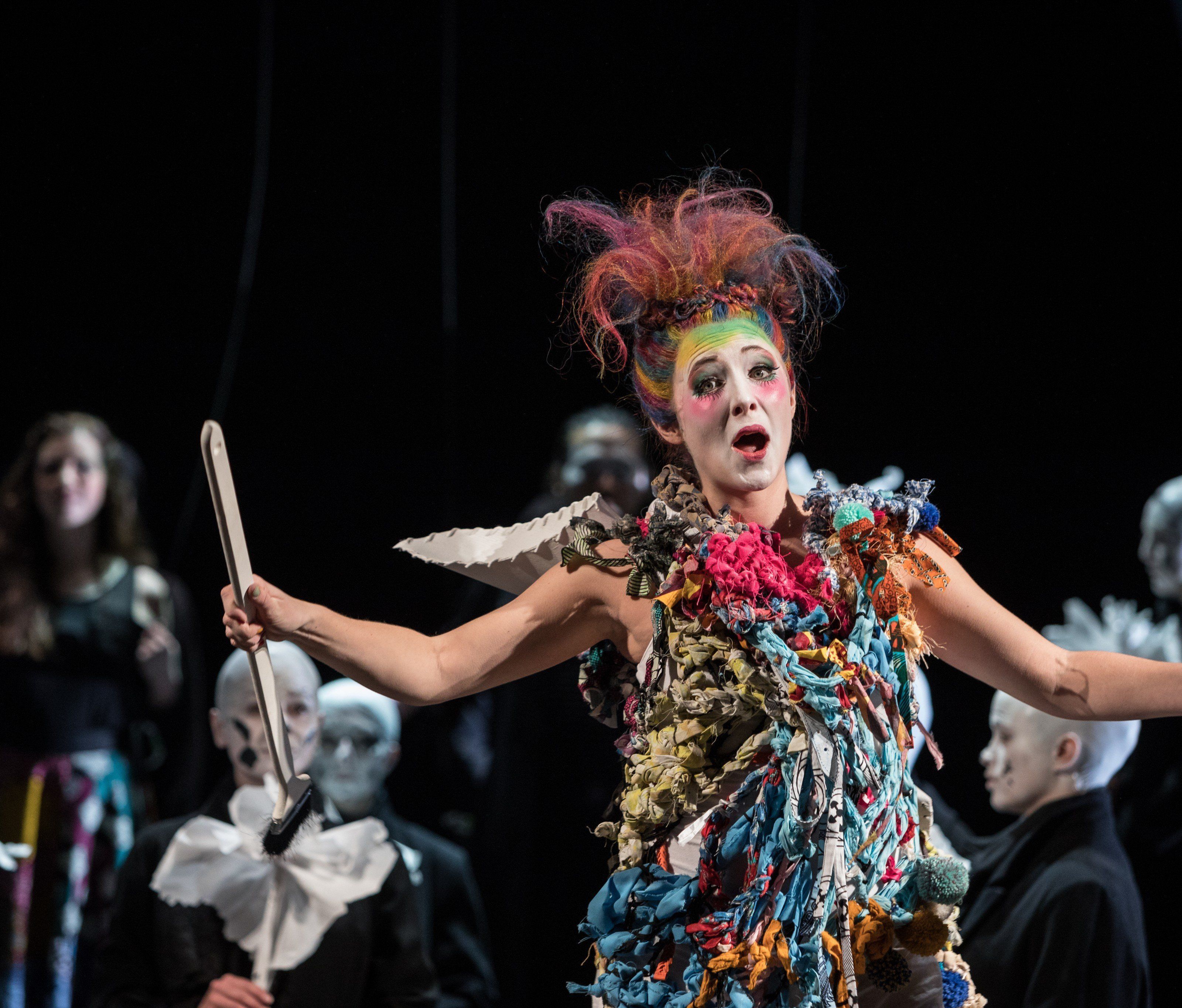 Doch Gluck hat die Katastrophe nach damaligem Theaterusus entschärft. Gott Amor – in der Bregenzer Inszenierung nicht mit Liebespfeilen, sondern mit Pinsel und Farbe bewaffnet – übermalt die Tragödie zu einem Happy End: Orpheus und die erneut wiederbelebte Eurydike schweben in einer Apotheose unter Jubelgesängen des Chores empor. Vorhang.