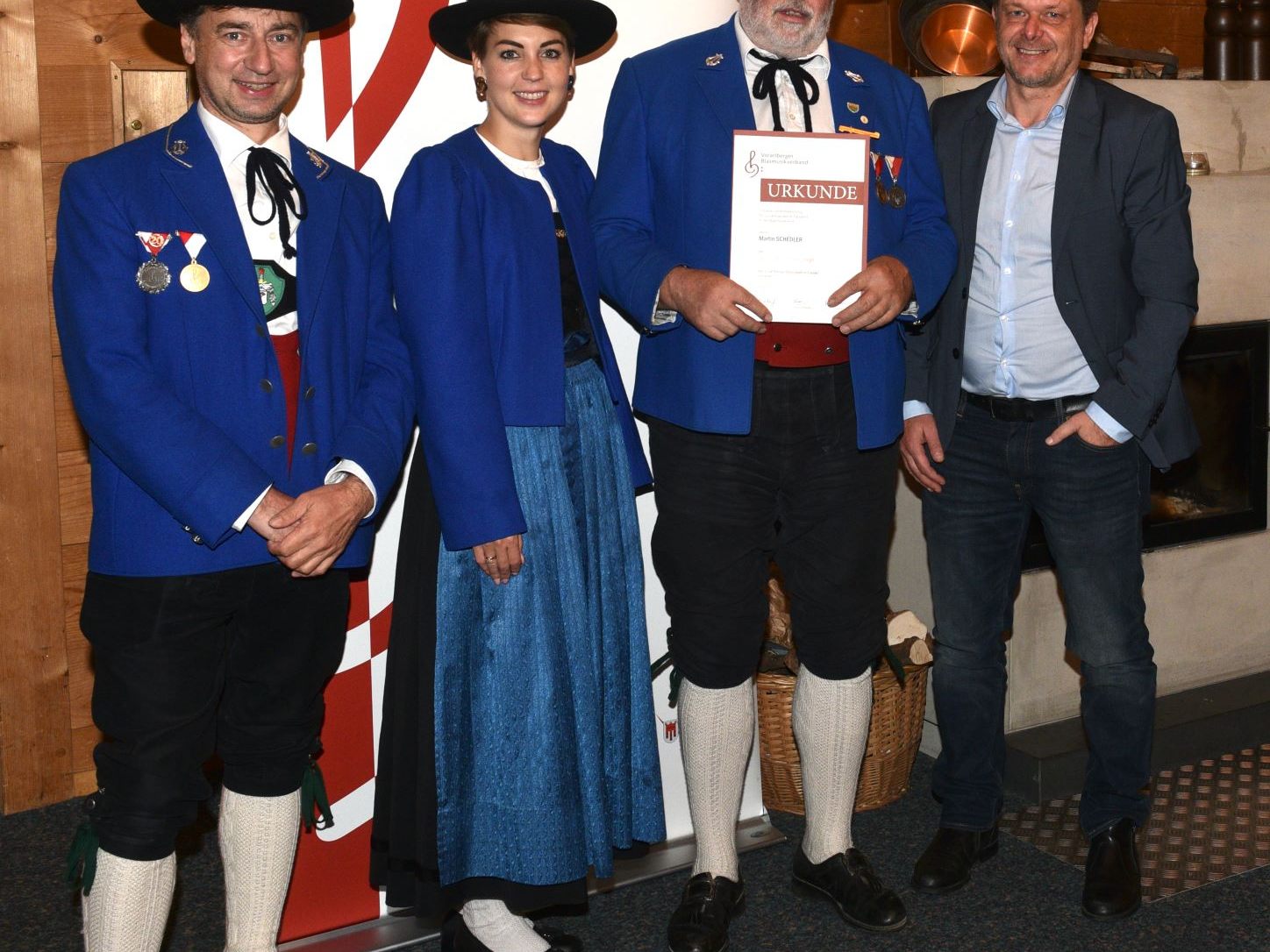 Liebe und Harmonie verbindet seit 50 Jahre Martin Schedler zur TK Brand. Er ist im Klarinettenregister ansässig und dort auch nicht mehr wegzudenken. Mit Vorbildcharakter für die Jugend prägt er das Vereinsleben. Für seine 50 jährige Musikantenzeit erhielt Martin von LObm Wolfram Baldauf die Goldene Ehrenspange des Vorarlberger Blasmusikverbandes beim Ehrungsabend auf dem Muttersberg angesteckt. Die Bezirksfunktionäre gratulieren herzlich und wünschen noch viele wunderbare Jahre bei der TK Brand.