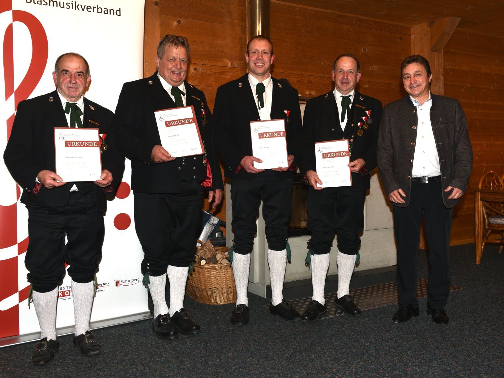 Die Goldene Ehrenspange erhielten auf dem Flügelhorn Thomas Türtscher, auf dem Waldhorn Erich Türtscher und auf dem Tenorhorn Manfred Domig. Erich hatte das Vertrauen der Musikanten und führte 32 Jahre die Kassa der TK Fontanella. Manfred ist durch und durch ein Musikant. Dies lebt er auch bei der Eisenbahnermusik und bei der Walser Powernkapelle, deren musikalischer Leiter er ist. Seine musikalischen Anfänge waren auf der Klarinette. Bei der Firobadmusig Thüringen spielte er das Bassflügelhorn.