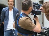 Dass es heute nicht ganz so heiß ist, darüber freut sich auch Statistin Sabrina aus Nofels. Schließlich trägt sie für die Szene Winterjacke und Wollmütze. Gemeinsam mit etwa 20 anderen Mitgliedern des Teams wartet sie nun in der schmalen Entenbachgasse auf ihren Einsatz. Bis die Kamera eingestellt ist und alle Szenen erklärt sind, vergeht eine Menge Zeit. Regisseur Thomas Fenkart gibt letzte Anweisungen. Zuletzt war er für den Schnitt der Michael-Jackson-Doku des ZDF verantwortlich. Ein Glücksfall also für die Band, einen erfahrenen Filmer an ihrer Seite zu haben, der weiß, wie er die Bilder in seinem Kopf in die Realität überträgt. Ich habe das Lied gehört und hatte spontan eine Idee, es umzusetzen, erzählt Fenkart und widmet sich wieder Kameramann und Darstellern. Noch einige Szenen stehen auf dem Programm. In den Abendstunden ist endlich alles im Kasten. Für heute. Denn bis das Video im Oktober präsentiert wird, müssen noch einige Szenen gedreht werden.