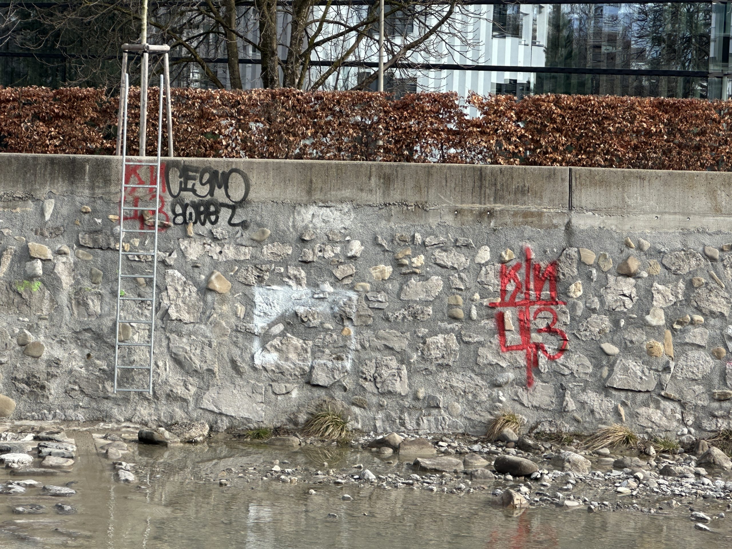 Mehrere Graffitis sorgen derzeit für Gesprächsstoff in Dornbirn. Dass im städtischen Raum und entlang der Ache Sprayer unterwegs sind, ist keine neue Nachricht. Die Platzierung und Bedeutung der zwei neueren Beispiele ist eigentliche Aufreger.