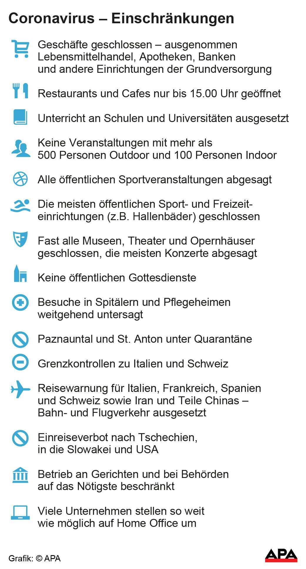 Landeshauptmann bat einmal mehr um Verständnis für die Maßnahmen, die "starke Einschnitte in den Lebensalltag bringen". Er verwies aber auch auf die "dramatische Entwicklung" in Tirol und in der Schweiz, "das Virus ist mehr als angekommen", so Wallner. Auch in Vorarlberg war die Zahl der Infizierten am Freitagabend auf 26 angestiegen, nach 16 am Donnerstagabend. Die Ausbreitung des Virus einzudämmen sei bisher nicht gelungen, deshalb müsse man nun zu noch stärkeren Maßnahmen greifen.