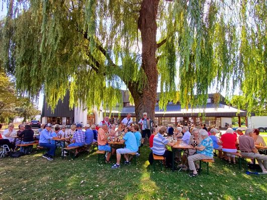 80 Seniorinnen und Senioren, ob mit dem Rollator, dem Rollstuhl, dem Taxi, zu Fuß oder mit dem Fahrrad folgten der Einladung. Zur Einstimmung gab es von Fussacher Frauen und Männer köstlich gebackene Kuchen und dazu Kaffee. Das Rheindelta Trio sorgte mit alten Schlagern und bekannten Melodien für die musikalische Unterhaltung. Am späteren Nachmittag wurden die Gäste vom Blaha Hof mit der köstlich gegrillten Bratwurscht, Weisse und Rote mit Kartoffelsalat und Brötle verwöhnt. So ein Fest bietet vielen Menschen die Gelegenheit für kurze Zeit die Sorgen und Wehwechen zu vergessen und sich mit Freunden und Bekannten aus dem Dorf auszutauschen und Spaß zu haben. Bei dieser Gelegenheit möchte sich der Vorstand bei der Pfarre Fussach für die Bereitstellung der Küche und des wunderbaren schattigen Kirchplatzes unter der Trauerweide herzlich bedanken.