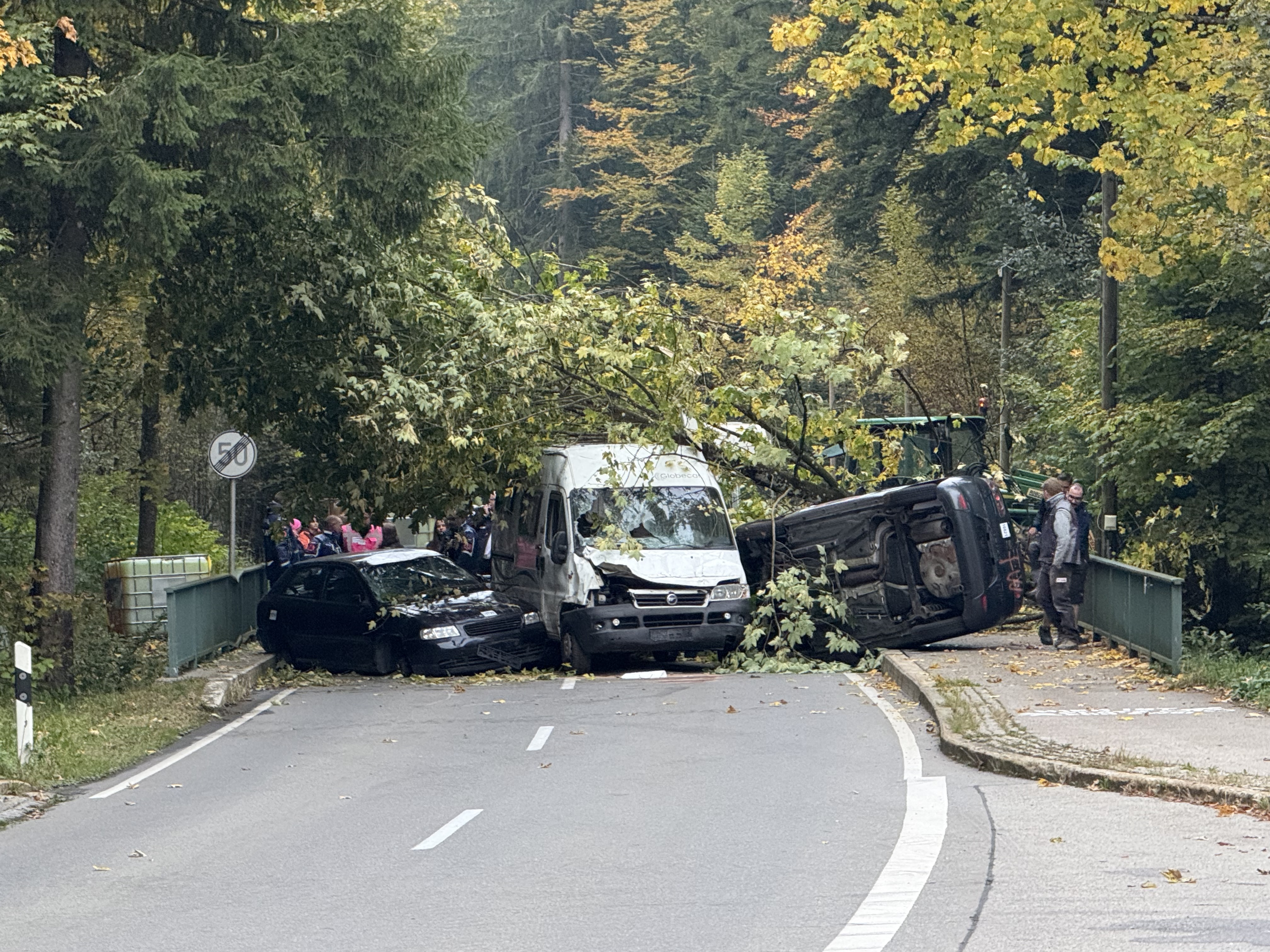 Etwa 50 Meter nach dem Grenzübergang Möggers-Scheidegg, auf deutscher Seite, wurde eine großangelegte Katastrophenschutzübung geprobt. Das Szenario waren drei verunfallte Pkw und ein Traktor mit Viehanhänger. Mehrere Personen galten dabei als verletzt und eingeklemmt.