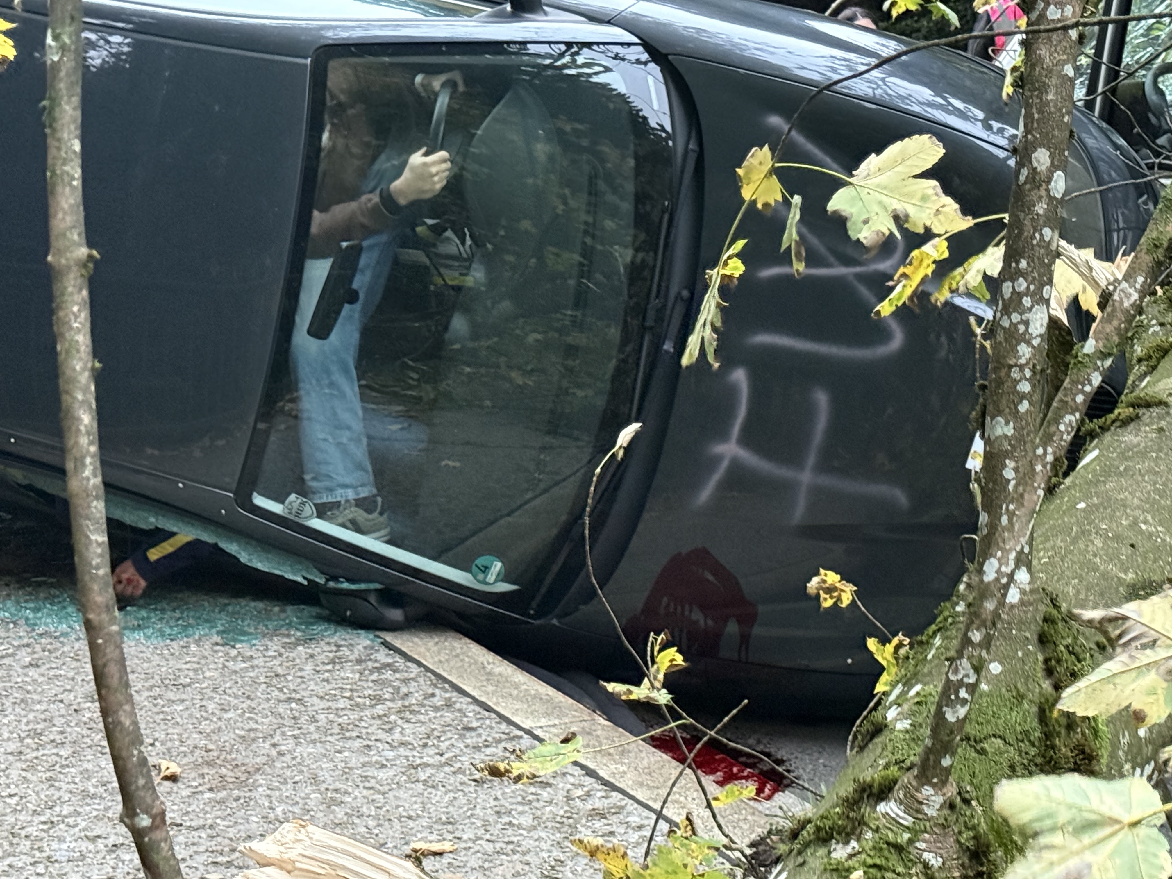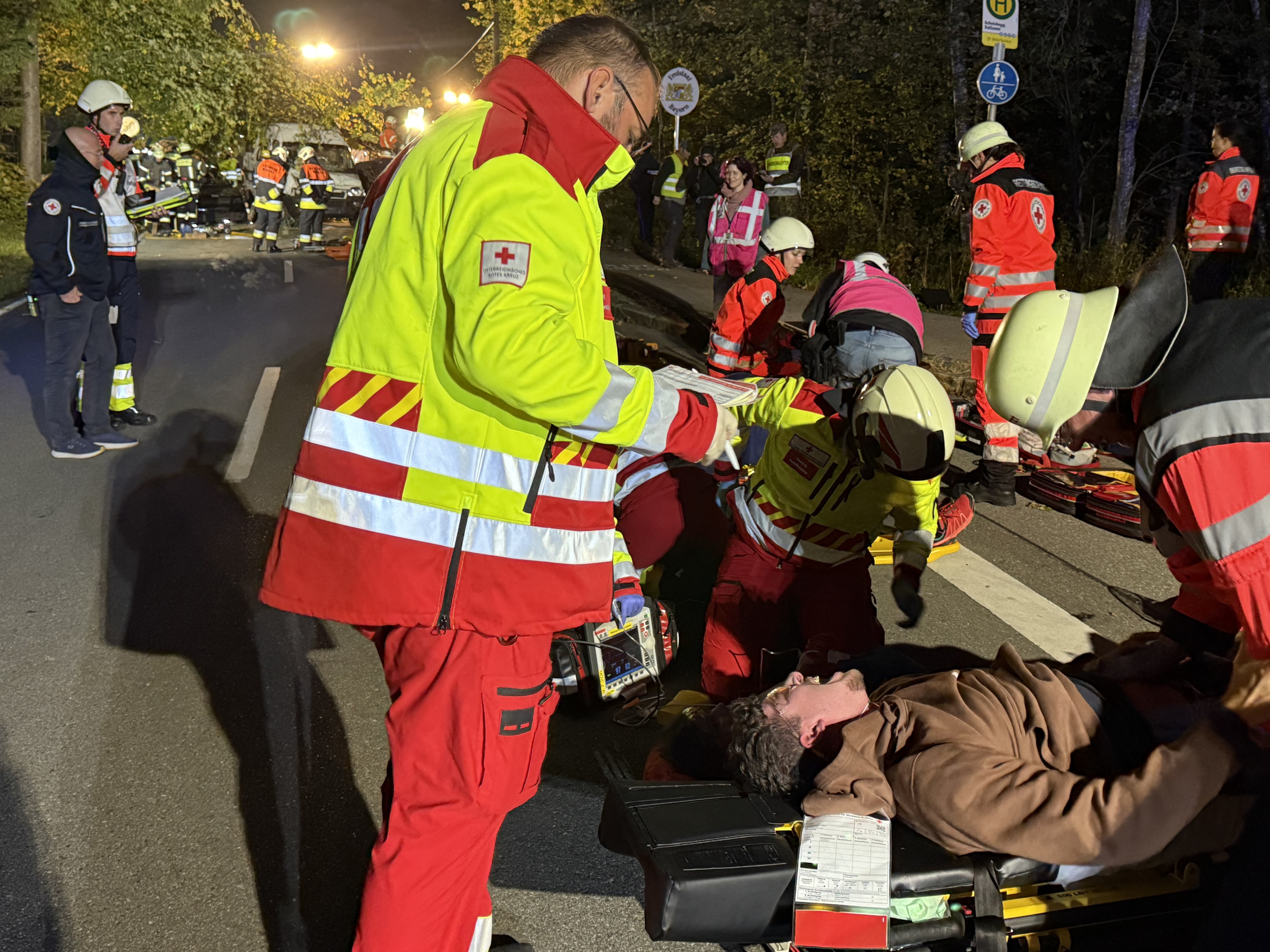 Das inszenierte Unfallszenario spielte sich rund 50 Meter hinter dem Grenzübergang Möggers-Scheidegg auf deutscher Seite ab.