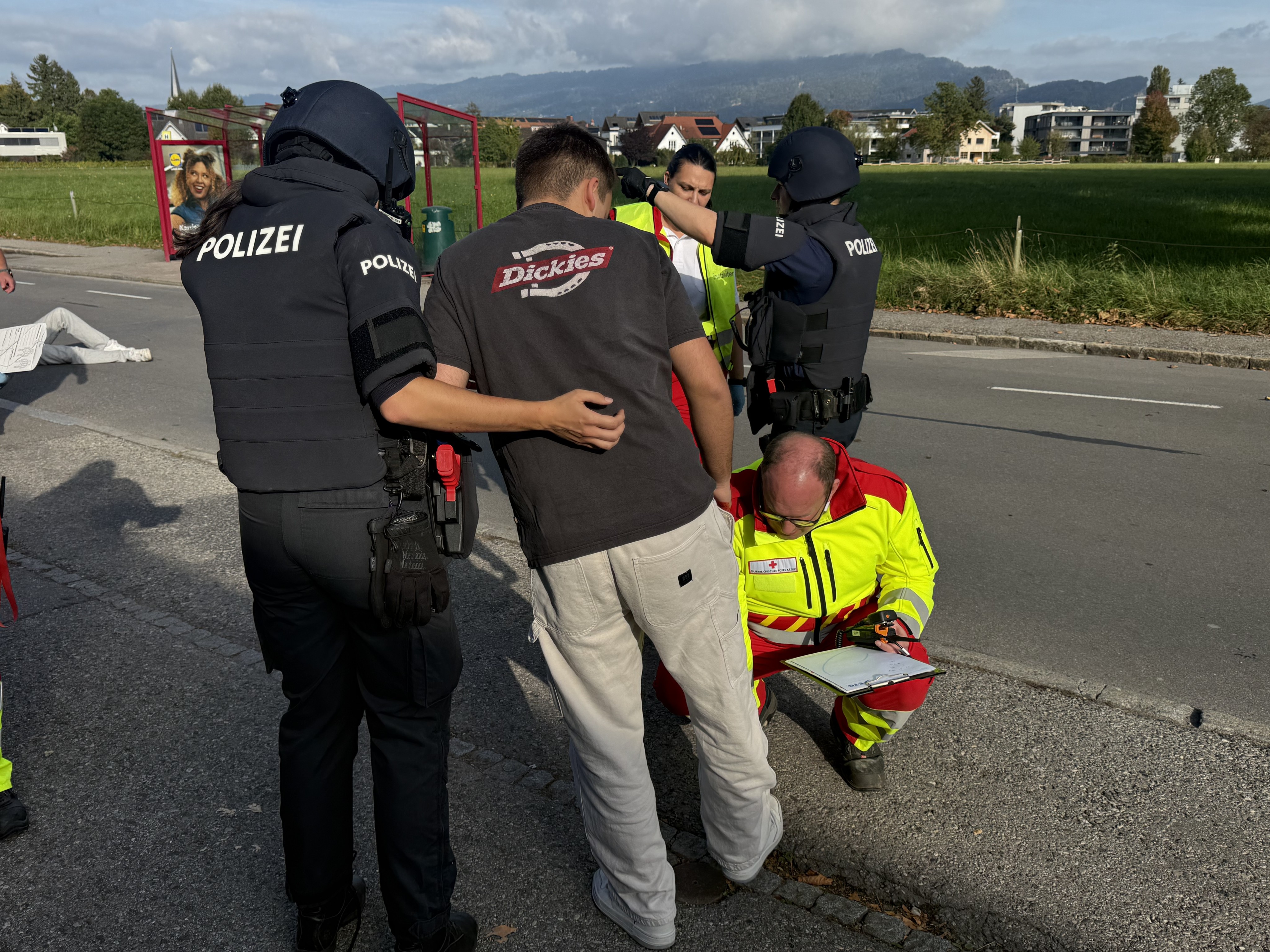 Großeinsatz in Hard: Rotes Kreuz übt Ernstfall mit Messerattacke ©VOL.AT/Ronny Vlach