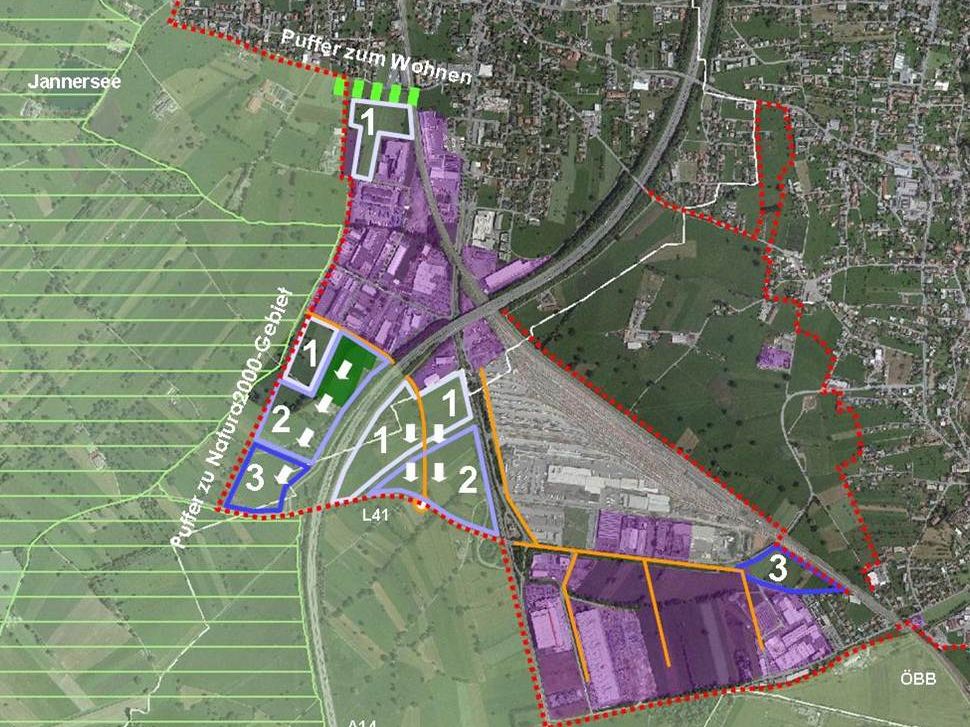 Der Güterbahnhof selbst soll nur Richtung Lauterach erweitert werden. Aus diesem Grund muss eine Ersatzfläche Richtung Wolfurt geschaffen werden. So müssen gegebenenfalls auch dort ansässige Firmen ihren Standort verlegen. Bis 2013 sollen die Pläne der ÖBB für die Erweiterung des Güterbahnhofs erstellt worden sein. Damit kann eine Umsetzung nach derzeitigem Stand frühestens 2014 erfolgen. Bis dahin soll auch das Entwicklungskonzept im Detail geplant werden.