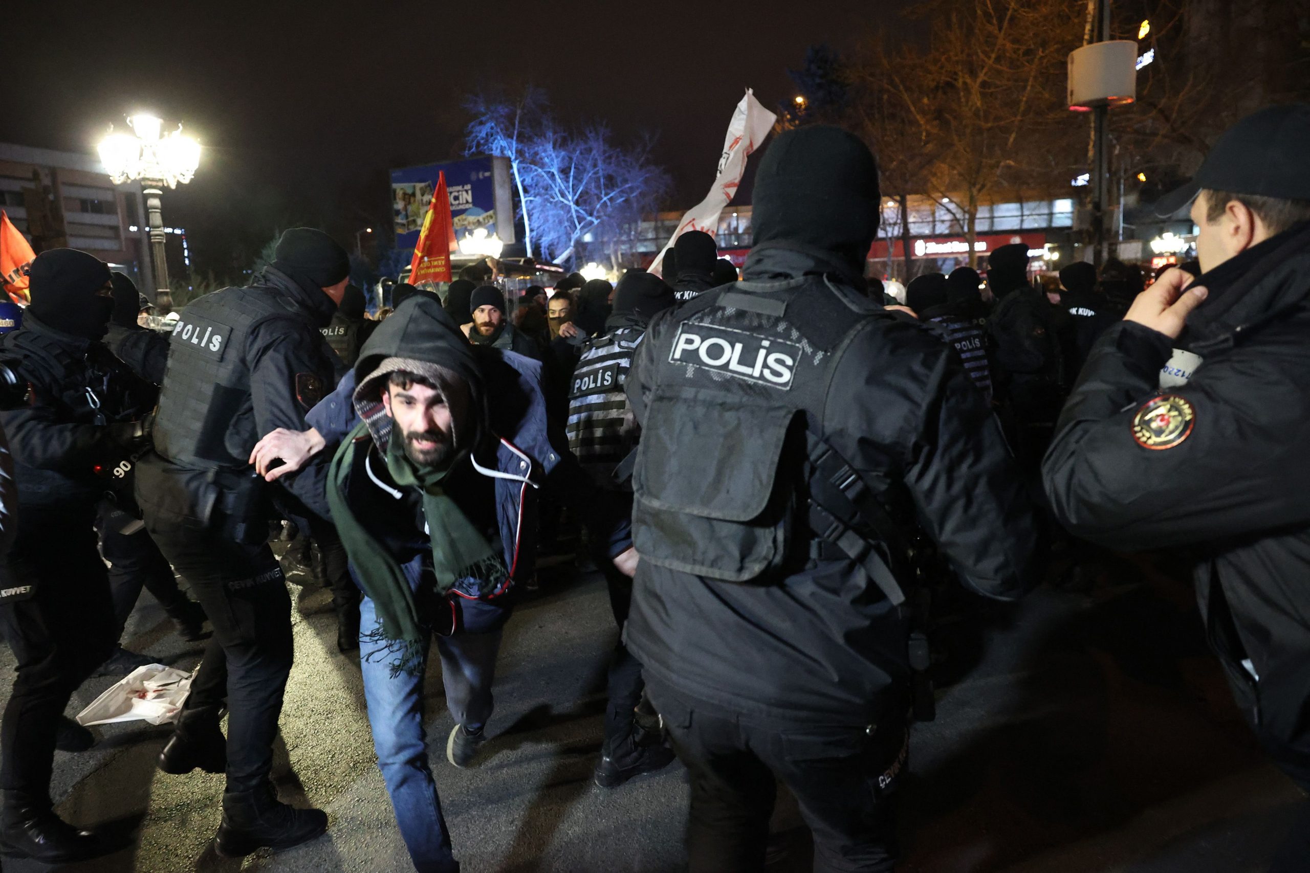 Beim Vorgehen der Polizei gegen die Demonstranten wurden auch zwei AFP-Journalisten von Gummikugeln an den Beinen getroffen. In der Hauptstadt Ankara gab es ebenfalls Zusammenstöße zwischen Polizisten und Demonstranten. In der westtürkischen Küstenstadt Izmir setzte die Polizei Wasserwerfer ein, um die Demonstranten auseinanderzutreiben, wie der Sender Halk TV berichtete. Die Polizei ging mit Tränengas, Pfeffersprays und Gummigeschoßen gegen die Demonstranten vor. In der Stadt Izmir im Westen der Türkei setzten die Beamten auch Wasserwerfer ein, um die Teilnehmer einer weiteren Kundgebung der Opposition auseinanderzutreiben, meldete Halk TV.