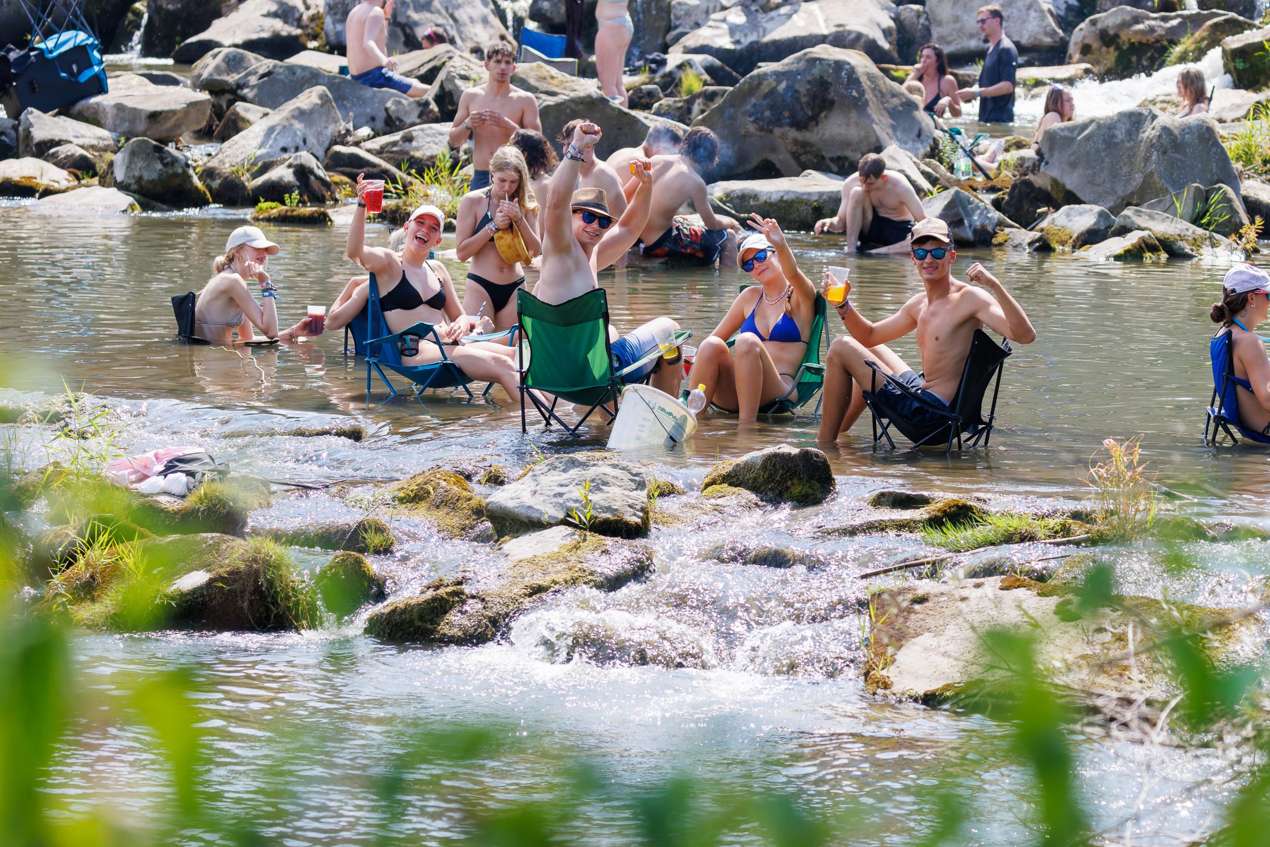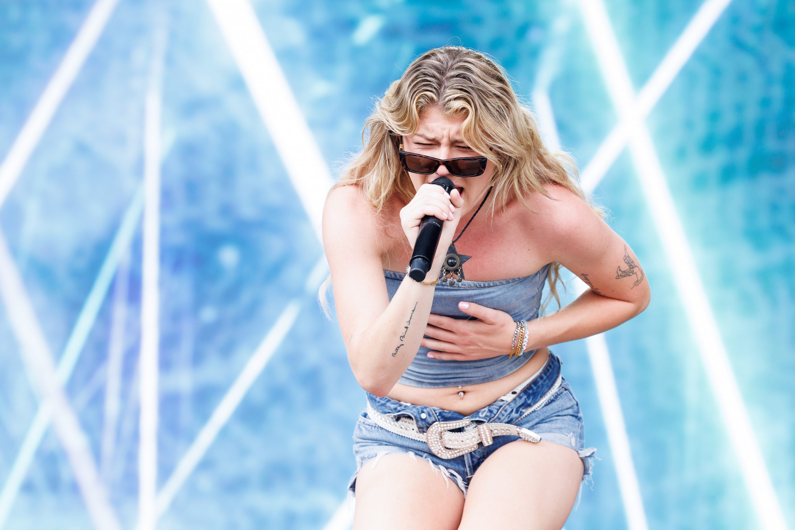 Ort des Geschehens war also am Mittwoch allein die Space Stage. Und auf dieser wurde ein beachtlich bunter Stilmix zelebriert. Eingeweiht wurde die Hauptbühne um 15 Uhr von Dasha, die gemütlichen, zeitweise durchaus rockigen Country-Pop samt Violin- und Banjo-Besetzung servierte. In Plauderlaune, hörbar angetan von den paar Hundert erschienenen Fans ("I love you") und weniger angetan von der brütenden Nachmittagshitze ("Oh my gosh, it's hot") - selbiger versuchten viele Festivalbesucherinnen und -besucher mit einem (Fuß-)Bad in der Traisen etwas entgegenzusetzen -, brachte die 24-jährige Amerikanerin freilich auch ihren Hit "Austin" dar, der im Vorjahr viral ging und ihr Leben komplett verändert habe, wie sie dem Publikum erzählte.