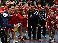 Angeführt von den Topscorern Tanaskovic und Schmid (je 7) zog Hard nach dem Wechsel davon. Nach einer engen Partie in den ersten 30 Minuten (nur Hard kam zweimal zwei Tore weg) zogen die Gäste in der zweiten Hälfte von 16:16 innerhalb von fünf Minuten auf 20:16 davon (37.). Doch der Champion steckte nicht auf, kämpfte sich heran und Wagesreiter reduzierte den Rückstand zweimal bis auf ein Tor (24:25, 25:26/100 Sekunden vor Schluss).