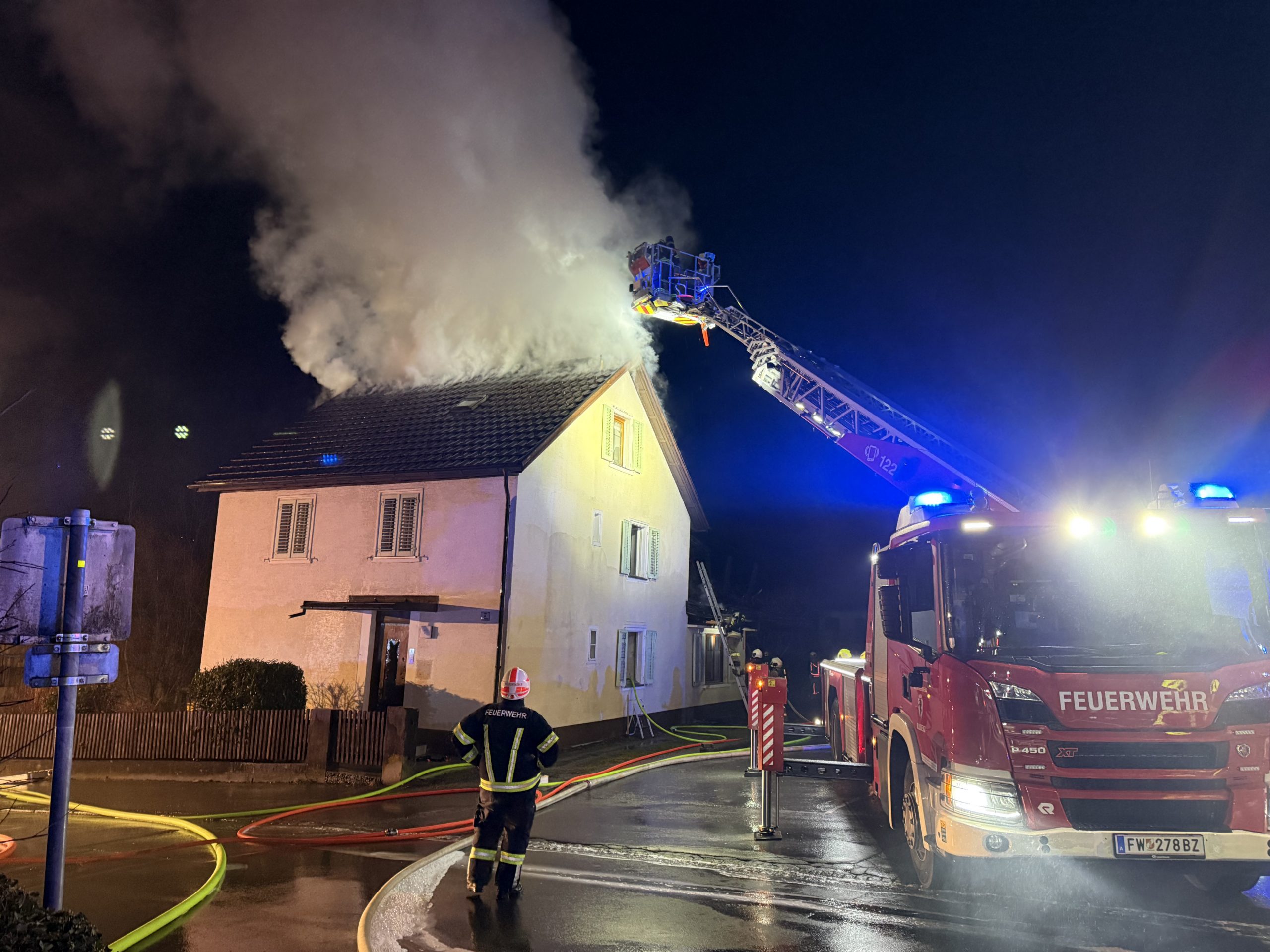 Am Freitagmorgen (24. Jänner) wurden die Einsatzkräfte kurz nach 01:00 Uhr wegen eines Feuers im Obdorfweg in Bludenz alarmiert. Dort stand ein Einfamilienhaus in Vollbrand.