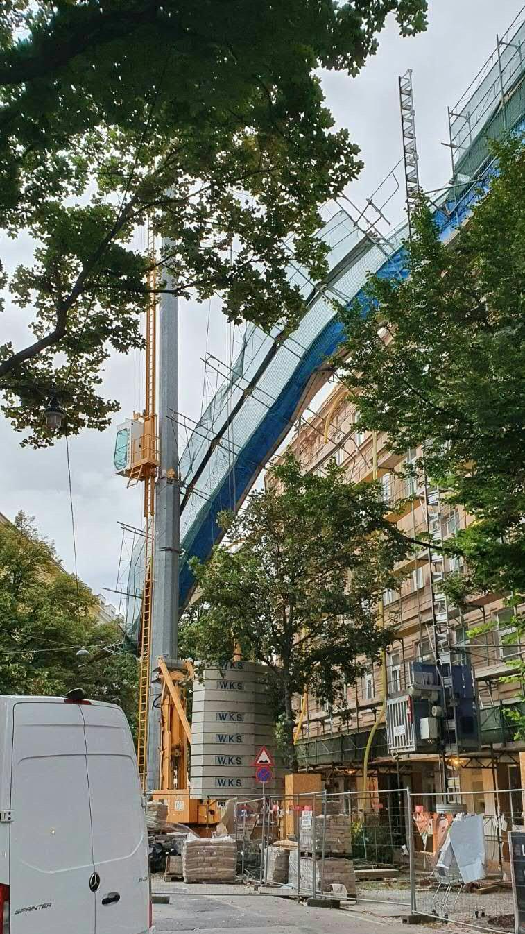 Wien. In der Wolfgang-Schmälzl-Gasse in Wien-Leopoldstadt musste etwa ein eingestürztes Gerüst drei Stunden lang gesichert werden. Es wurde laut Feiler mit mehreren Greifzügen wieder in die ursprüngliche Position gebracht um es dort zu fixieren.