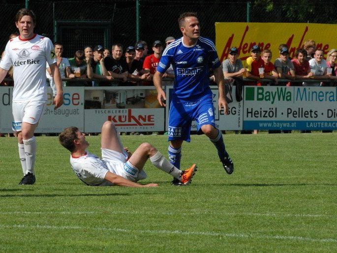 In der Anfangsphase der Partie hatte der Tabellenführer aus Bregenz mehr Spielanteile. Großchancen blieben jedoch aus. Einzig nennenswert jene von Kapitän Unverdorben, der in der 12. Minute nach idealem Zuspiel von Matthias Einsle die Chance zur Führung aus kurzer Distanz auf dem Fuß hatte. Diese gelang dann aber Vinicius Maciel Gomes, der nach kurzem Hacken auf halblinker Position in der 38. Minute aus gut 20 Metern abzog und links ins Eck per „Aufsitzer“ traf. Unhaltbar schien dieser Ball allerdings nicht, zumal Torhüter Manuel Schneider auch am Ball „dran“ war. Einzig nennenswerte Chance der Heimmannschaft ein Kopfball des bemühten Rochus Schallert in der Nachspielzeit von Halbzeit Eins.