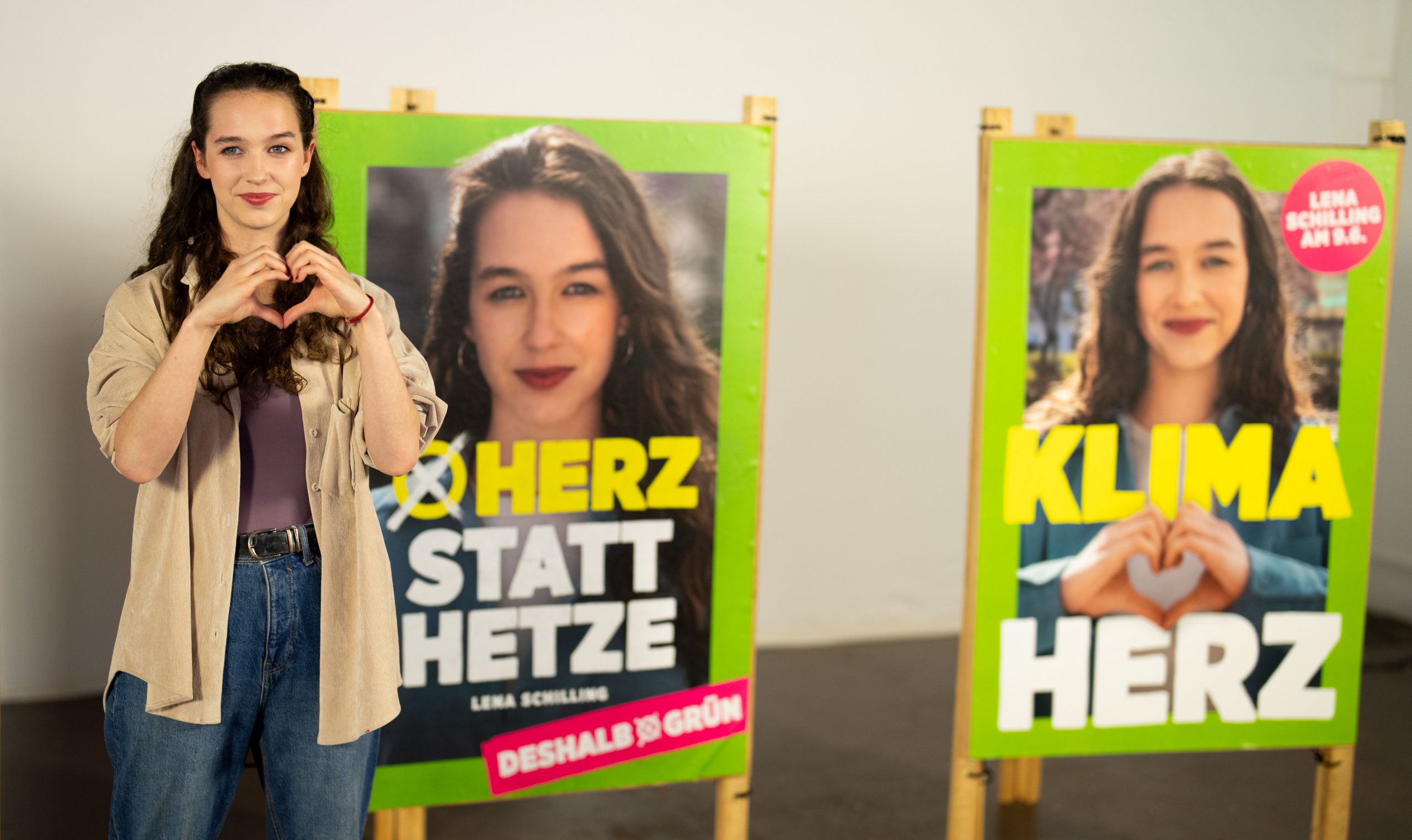 Die Grünen setzen auf das Herz. Auf den vier am Donnerstag präsentierten Plakat-Sujets für die Europawahl ist Spitzenkandidatin Lena Schilling abgebildet. Die Slogans lauten: "Herz statt Hetze", "Europa braucht Herz", "Klima-Herz" und "Klima braucht Herz."