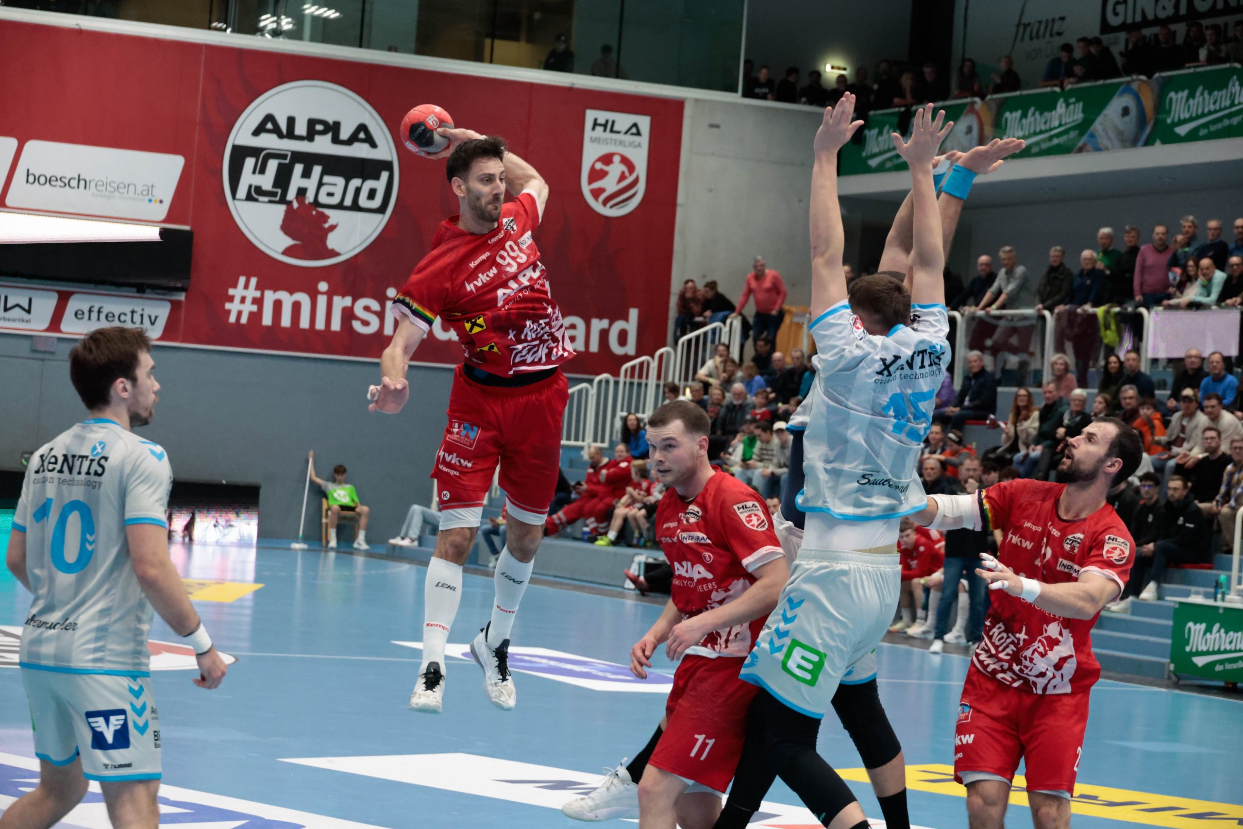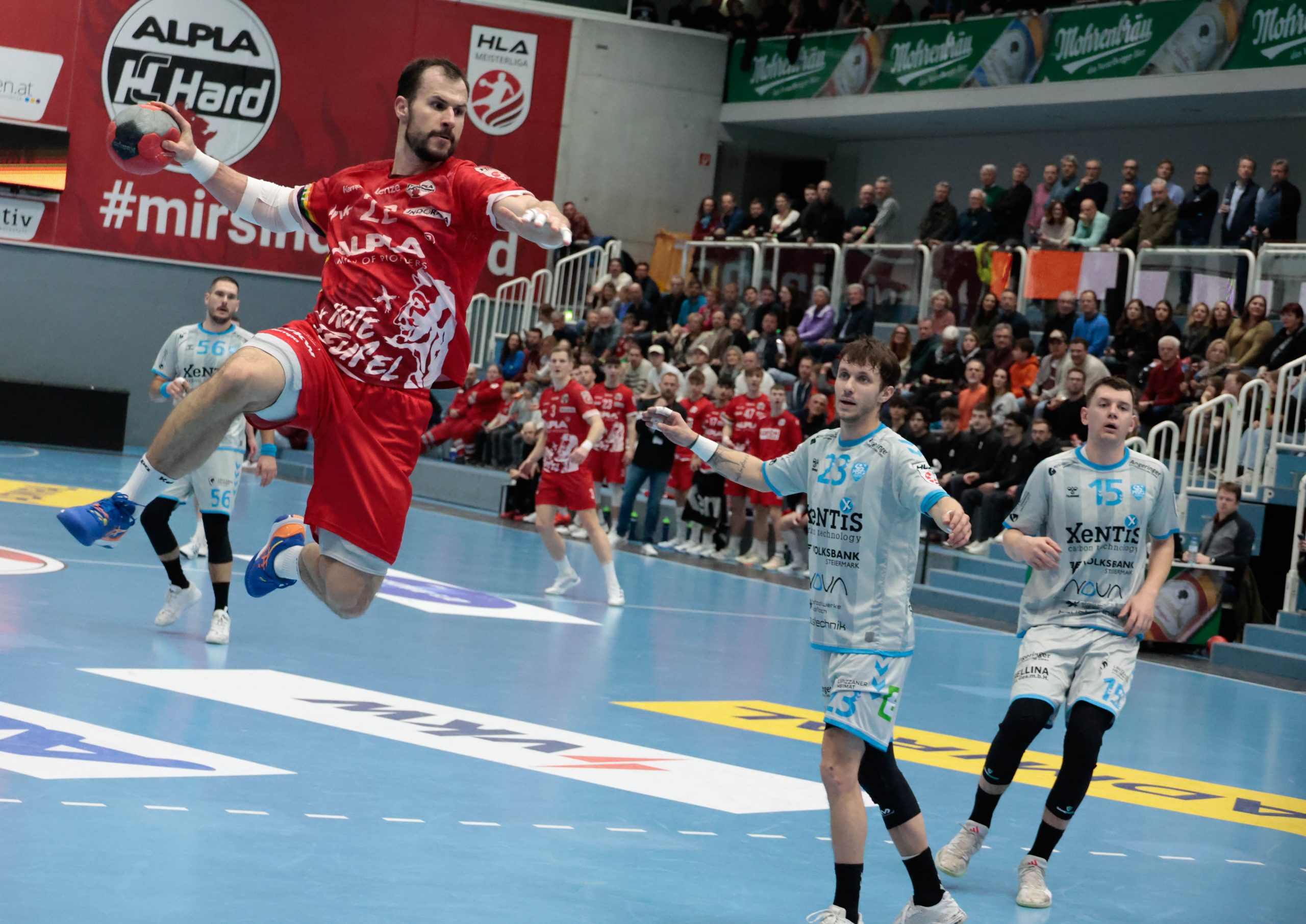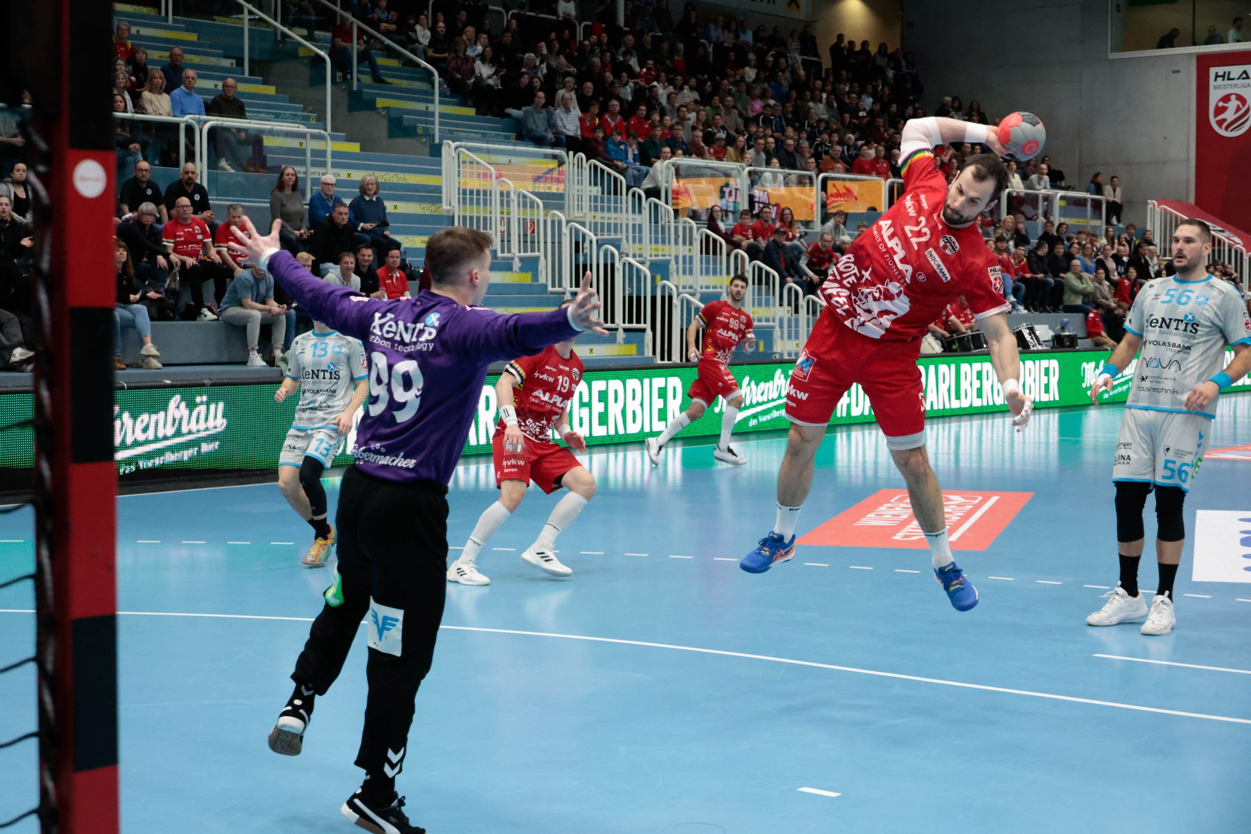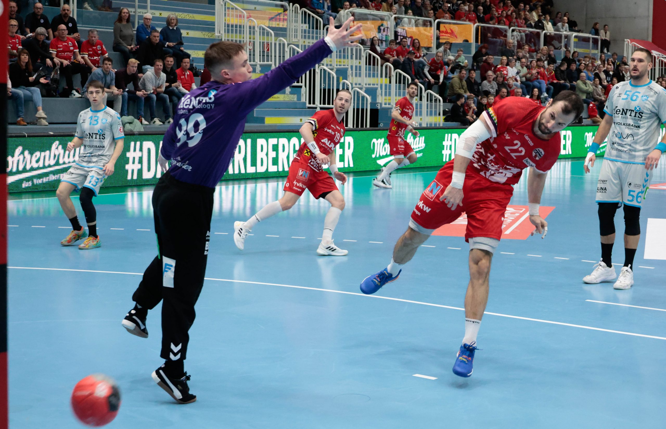 Die Vorarlberger bezwangen Nachzügler Bärnbach/Köflach mit 34:25 und bauten vorerst ihren Vorsprung auf die Verfolger Krems und die Füchse auf sechs Punkte aus.