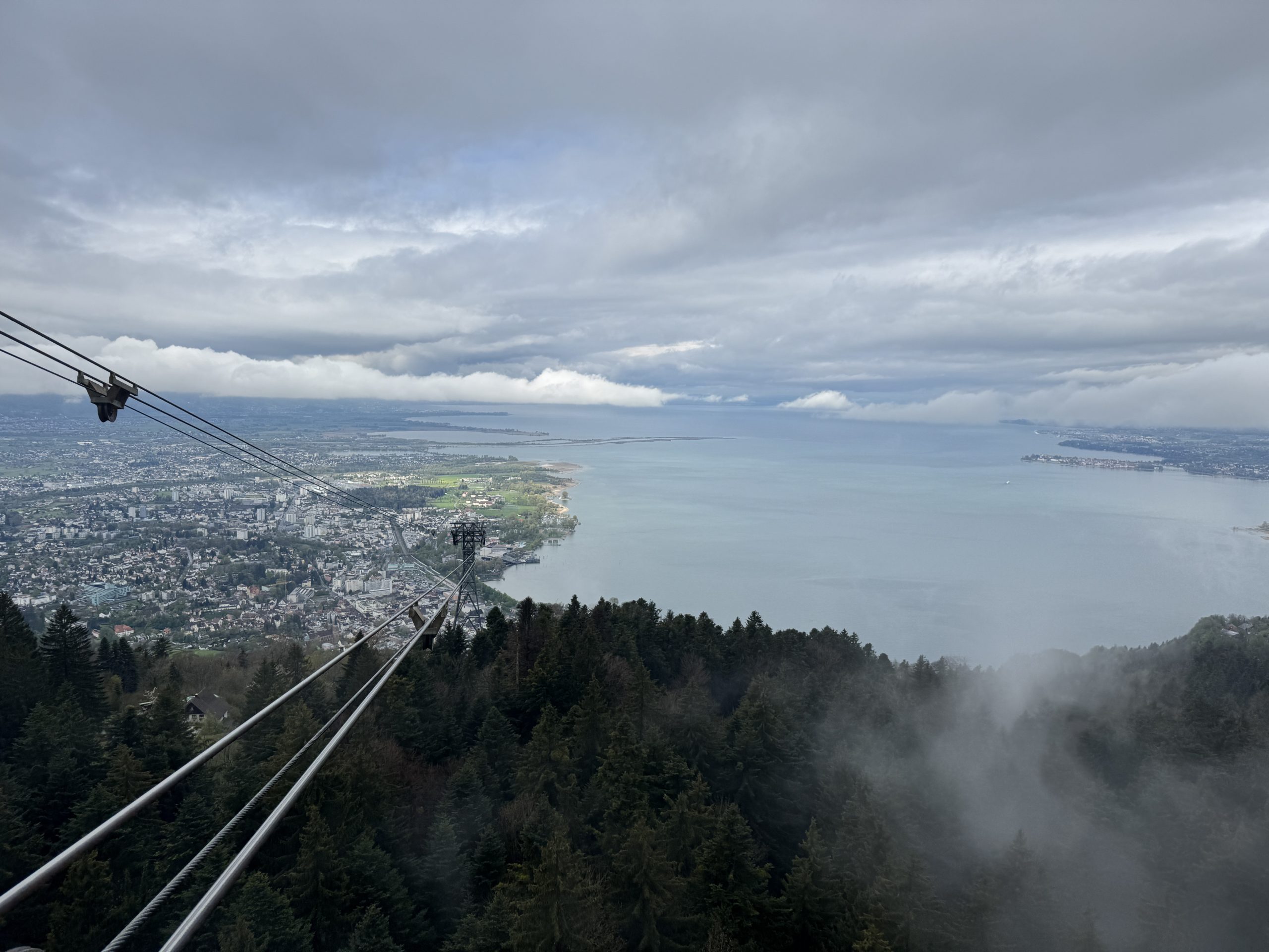 Hoch über dem Bodensee: VOL.AT im offenen Revisionskorb der Pfänderbahn