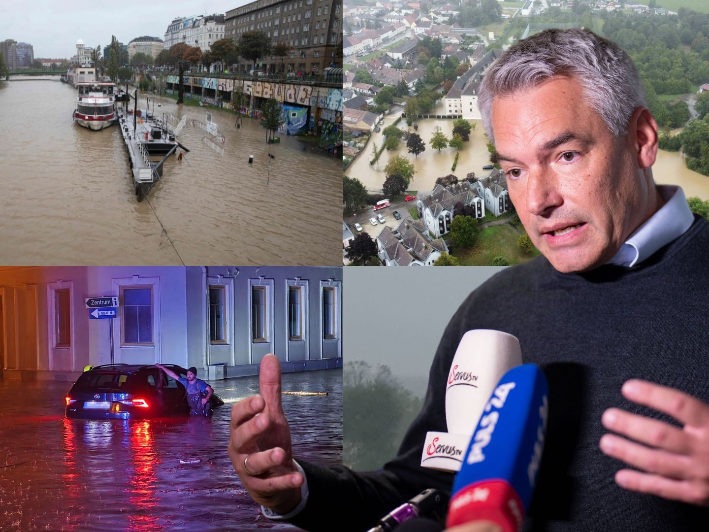 "Die Lageentwicklung bleibt weiter angespannt", berichtete Nehammer nach der Sitzung. In Niederösterreich könne man etwa davon ausgehen, dass sich die Situation weiter zuspitzen werde, sagte er. "Es gibt hier große Druckpunkte, wo einerseits gegen die Wassermassen gekämpft wird und auch gegen den Sturm." Die Prognosen der Meteorologen würden darauf hindeuten, dass sich die Lage erst Mitte der Woche entspannen werde.
