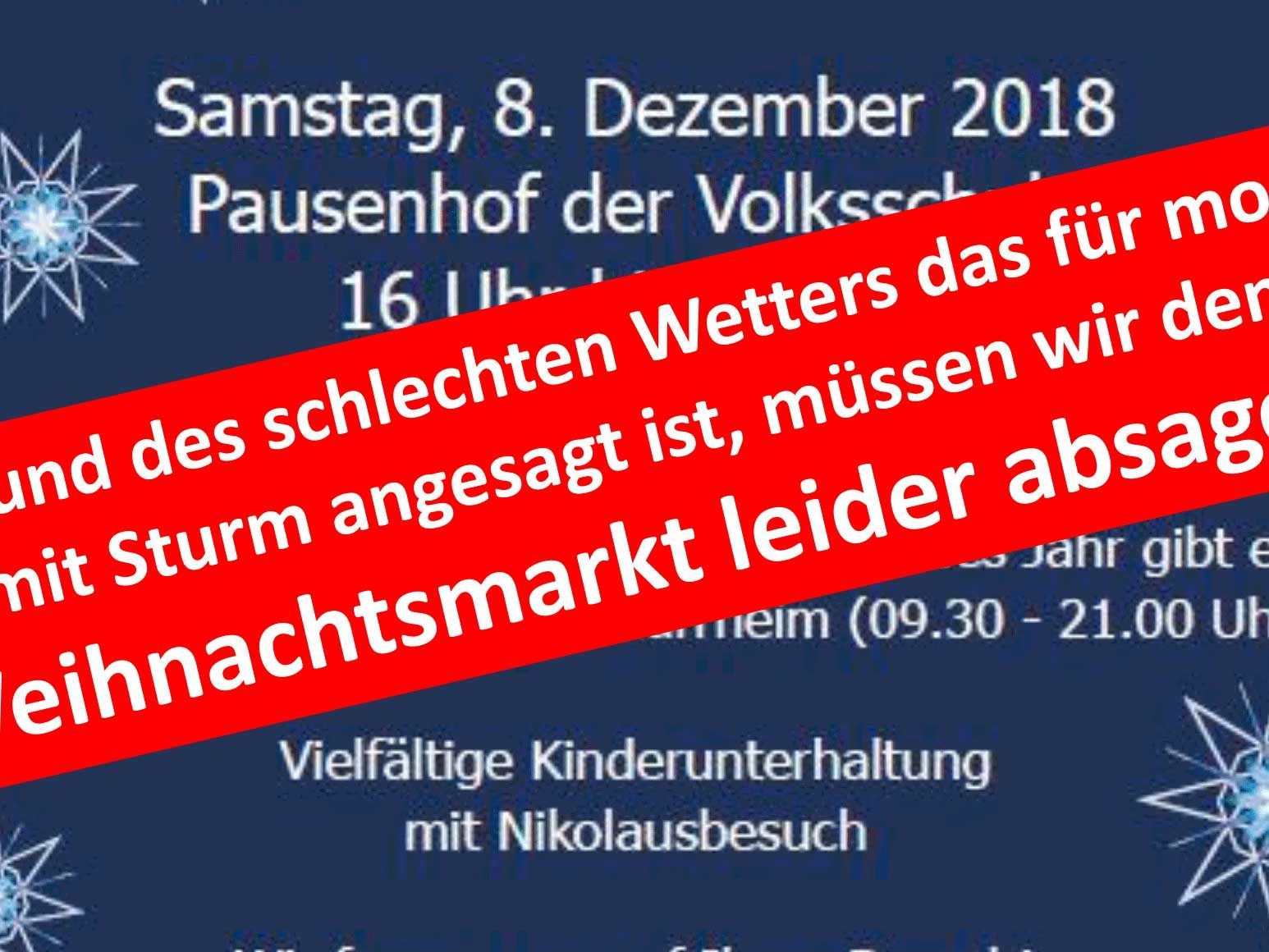 Aufgrund des schlechten Wetters, das für morgen mit Sturm angesagt ist, müssen wir den Weihnachtsmarkt leider absagen!