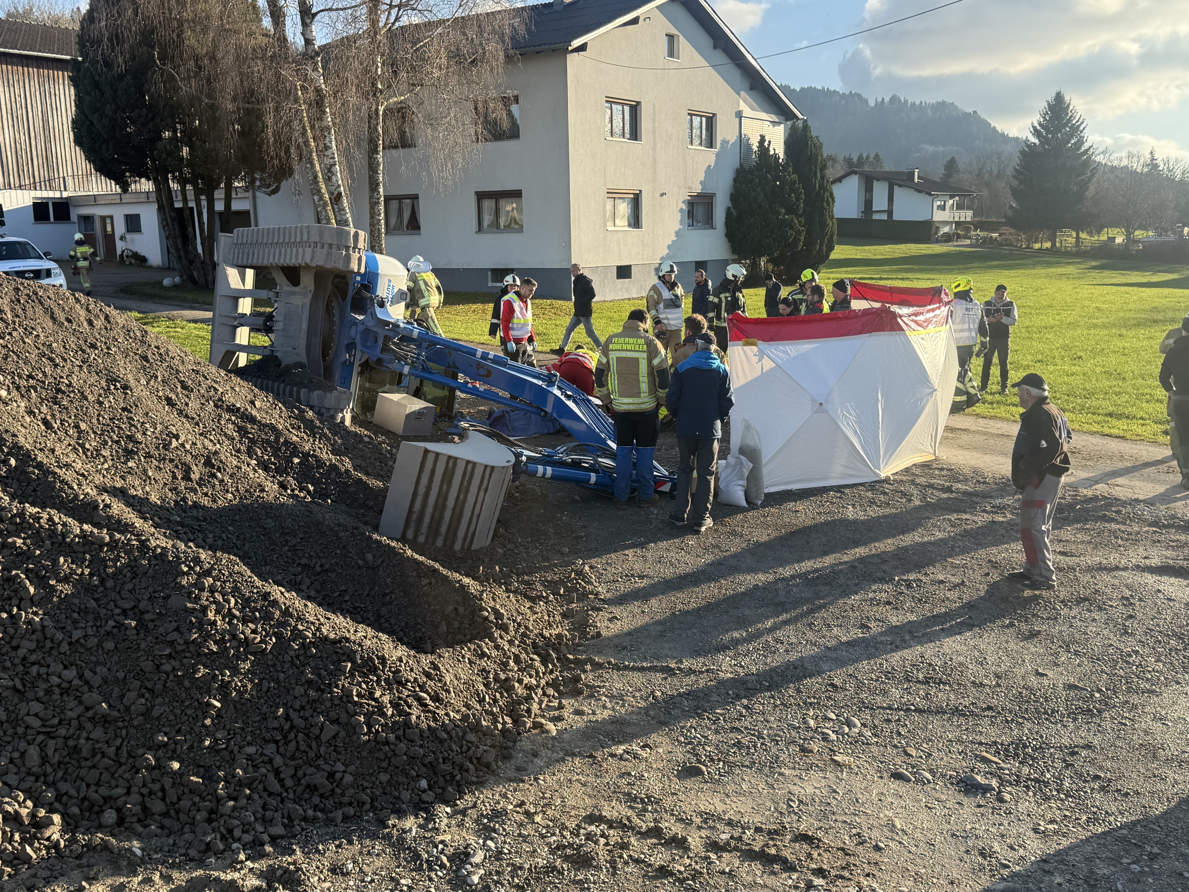 Hohenweiler: Baggerfahrer bei Arbeitsunfall verletzt
