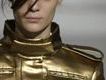 Schon die – durch riesige Sonnenbrillen noch zusätzlich gehandicapten – Models hatten vorher Mühe gehabt, heil durch verwinkelte transparente Abtrennung auf den in rotes Dämmerlicht getauchten Laufsteg zu gelangen. Galliano, der eigentlich die Selbstinszenierung nach dem Defilee im verrückten Kostüm liebt, verpatzte der Aufprall den gewohnten Triumphmarsch. Er kam – tapfer – nur kurz heraus.