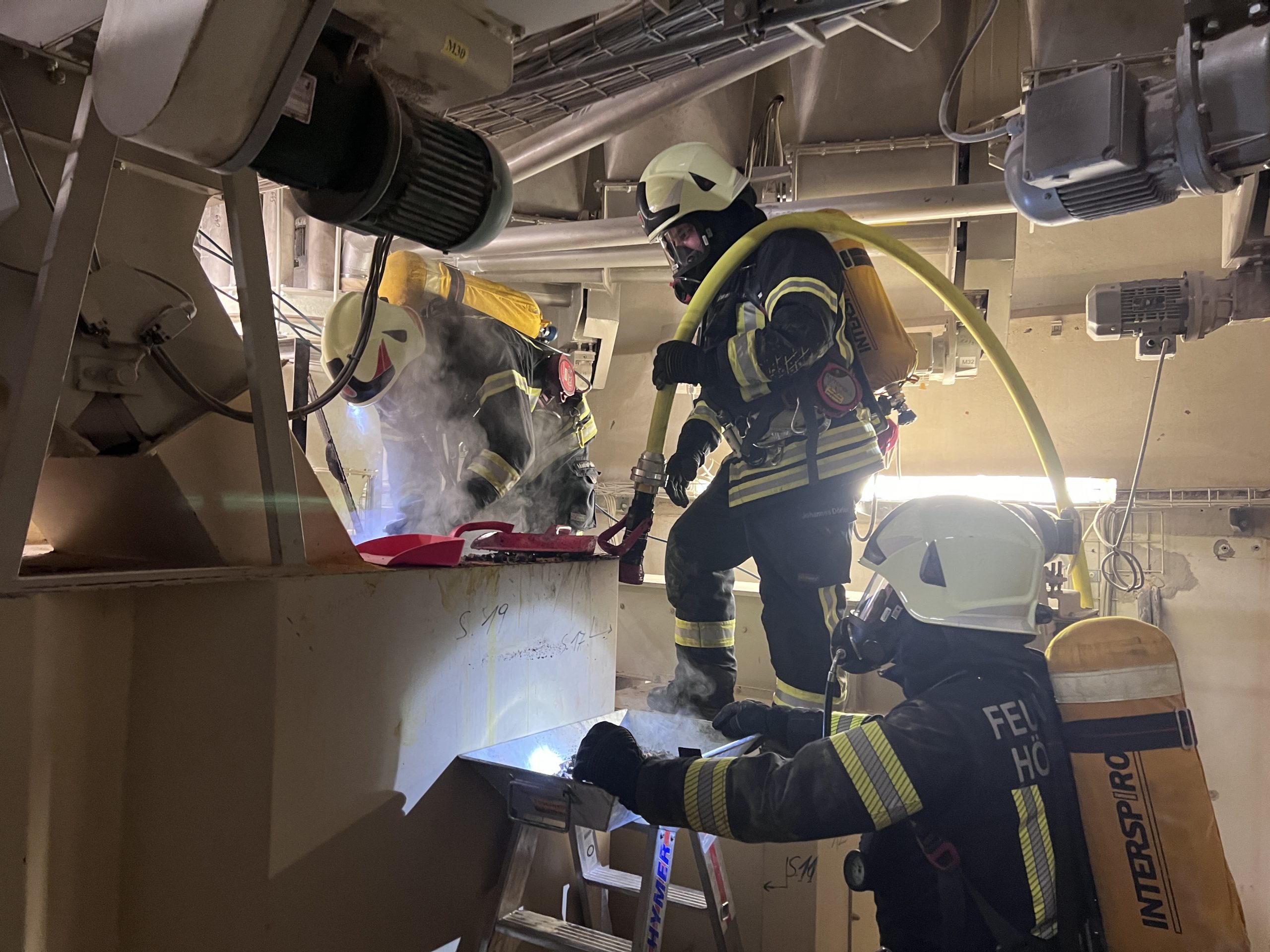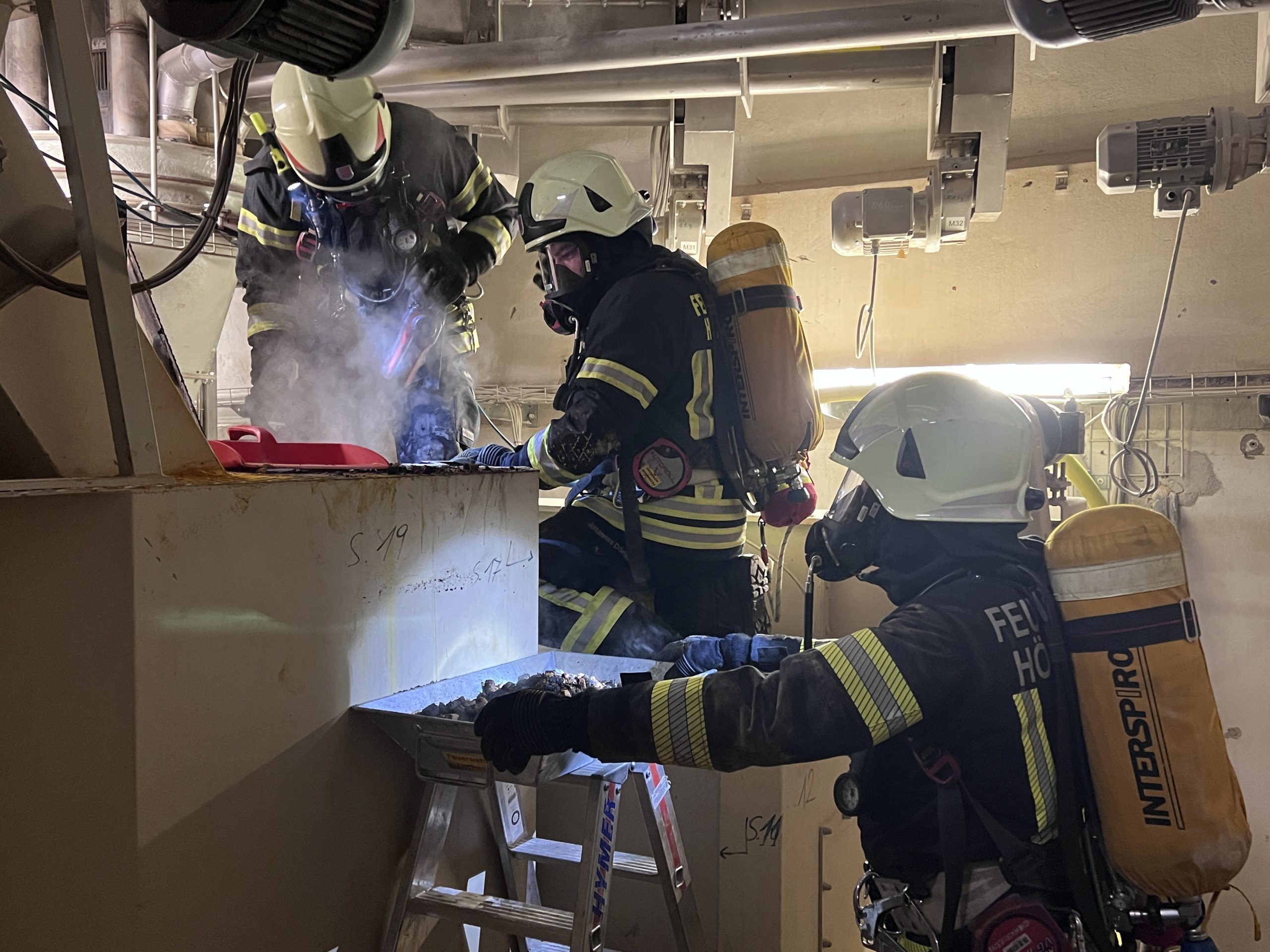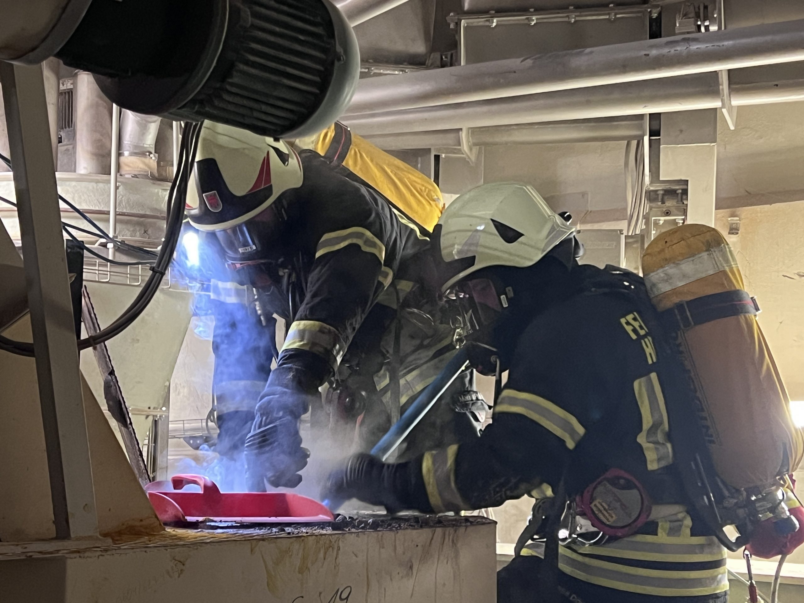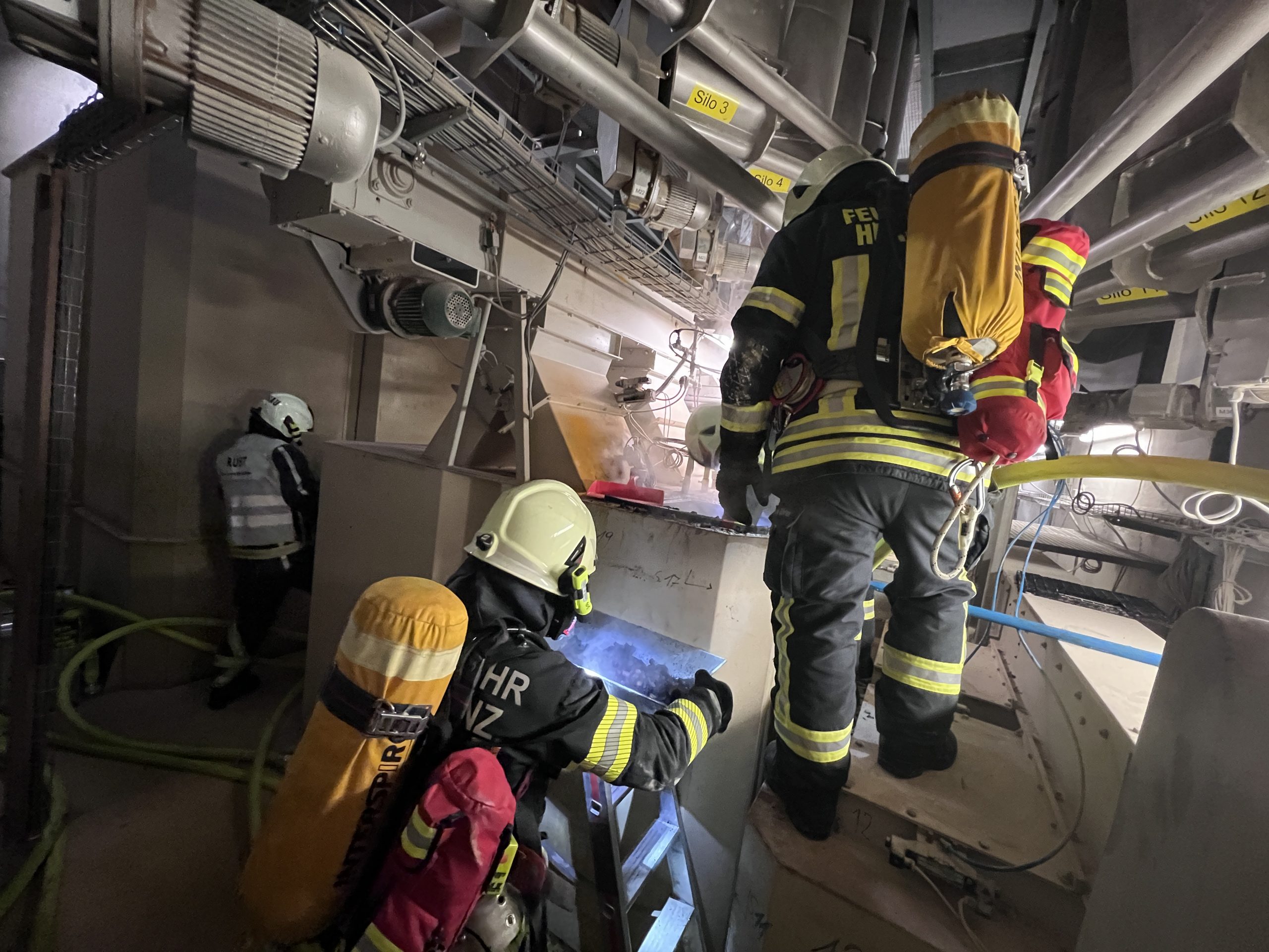 In der Mühle befinden sich acht Silos - in einem dieser Silos kam es in etwa drei Metern Tiefe zu einem Brand. Es gibt keine Verletzten. Laut Einsatzleiter Markus Schupp ist die "Lage soweit stabil".