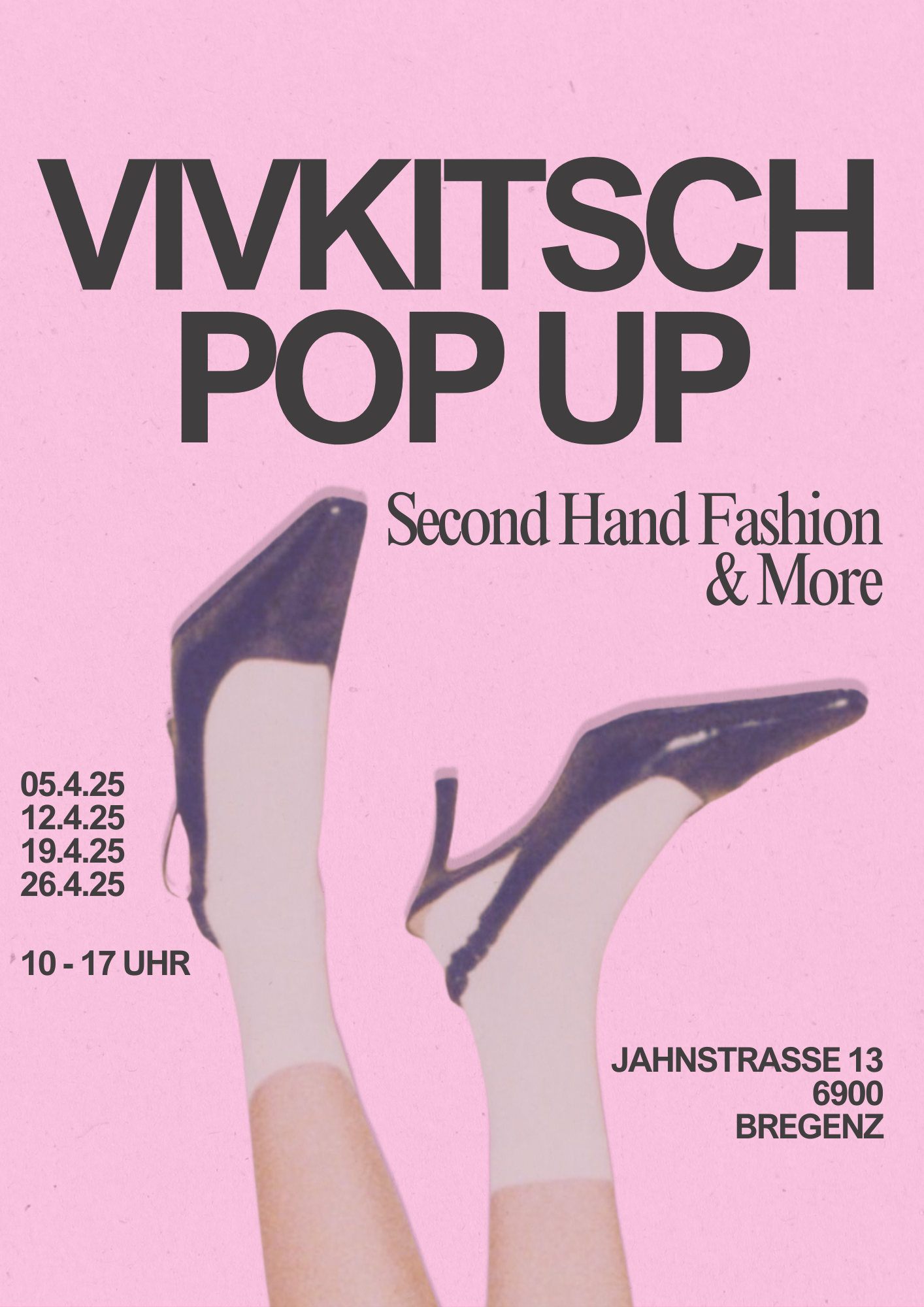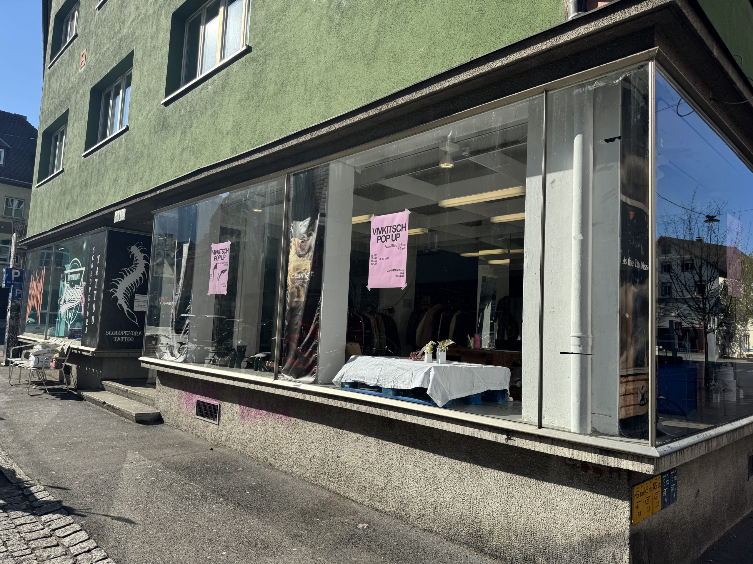 Das Vivkitsch-Pop-Up läuft jeden Samstag im April von 10 bis 17 Uhr in der Jahnstraße 13 in Bregenz. Wer Lust auf einzigartige Mode, nachhaltigen Style und eine Atmosphäre zum Wohlfühlen hat, sollte sich diese Daten im Kopf behalten.