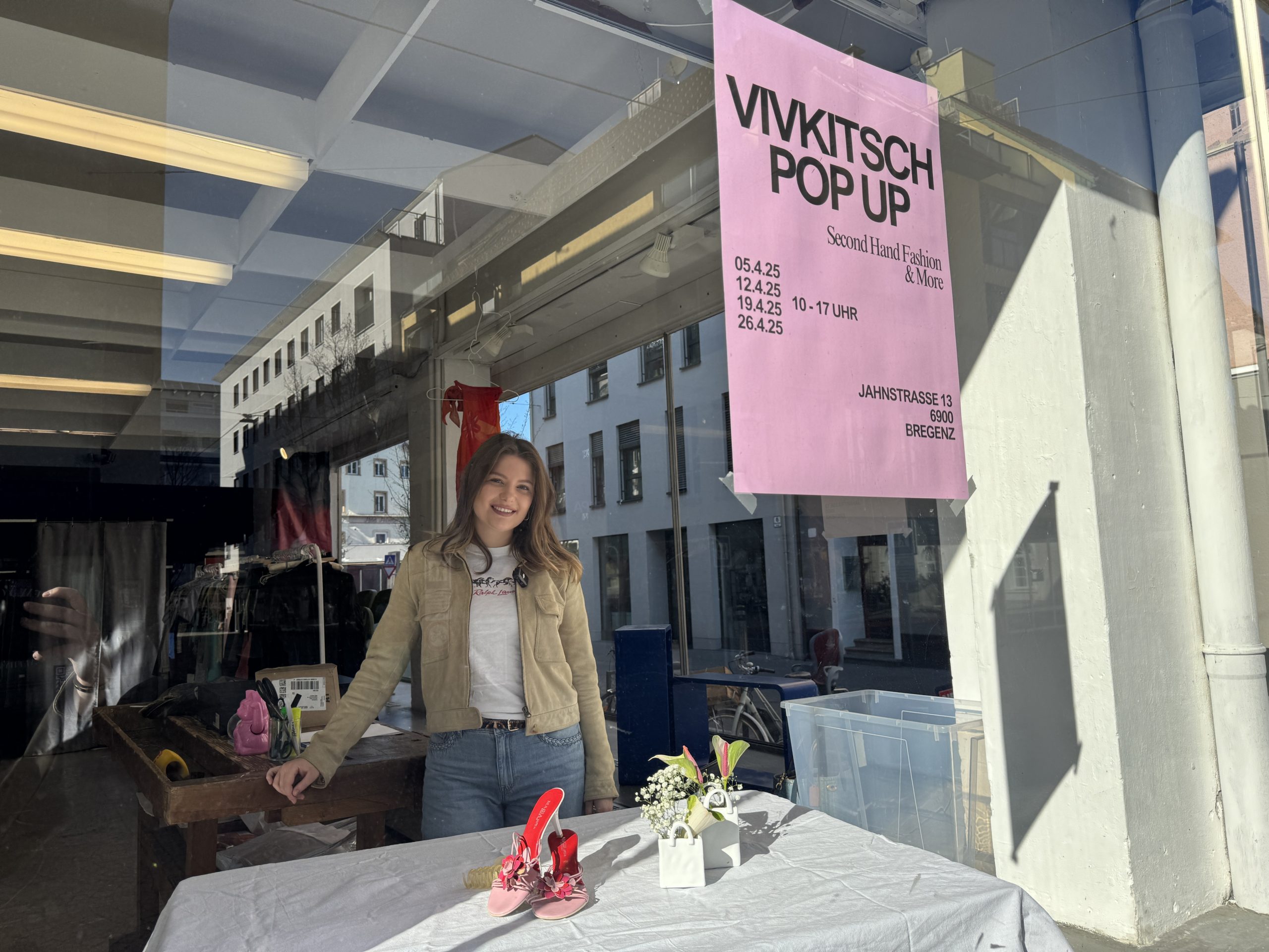 Sie ist erst 24 Jahre alt und führte bereits ihren eigenen Store in Wien – jetzt startet Vivienne Riepl in Vorarlberg so richtig durch. Mit dem Vintage-Pop-Up-Label "Vivkitsch" setzt sie auf Nachhaltigkeit, Style und das gewisse Etwas. Seit Samstag läuft die aktuelle Pop-Up-Reihe in der Jahnstraße in Bregenz – und jeden Samstag im April gilt nun: Türen auf für Second-Hand-Fashion mit Persönlichkeit. "Heute startet das Pop-Up – und ich freue mich riesig!", sagt Riepl gegenüber VOL.AT am vergangenen Samstag.