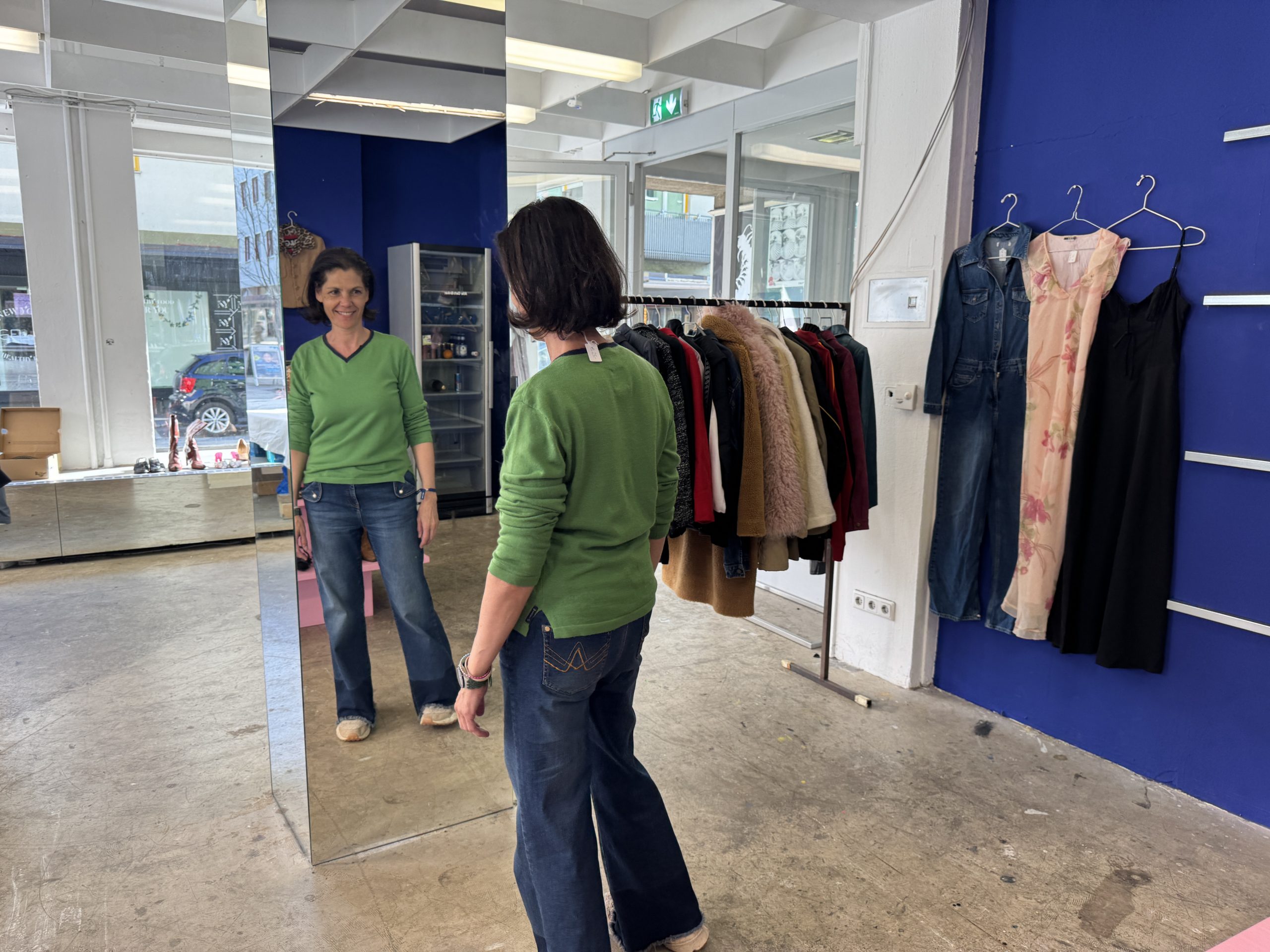 Auch beim Größenangebot denkt sie inklusiv: Von XXS bis XXL ist alles dabei – obwohl sie zugibt, dass größere Größen im Vintage-Sektor eine Herausforderung darstellen. "Aber wir geben alles für die Vielfalt", so die Lauteracherin.