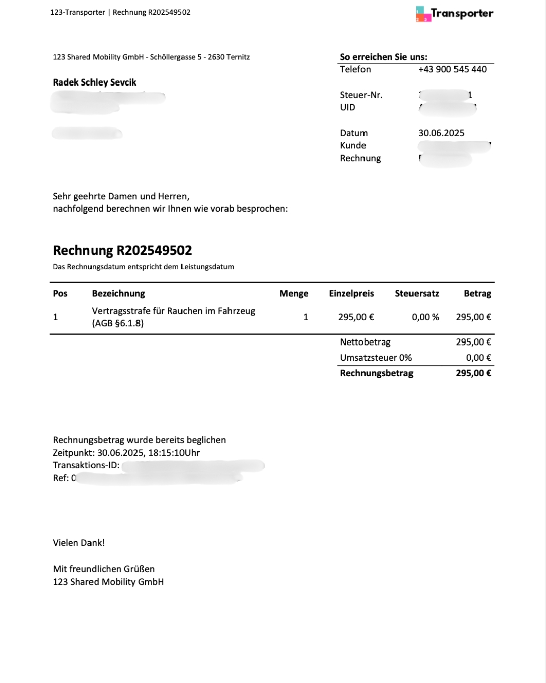 VOL.AT hat die „123 Shared Mobility GmbH“mehrfach mit den geschilderten Vorwürfen konfrontiert – telefonisch und schriftlich. Zwar war vereinzelt jemand erreichbar, konkrete Fragen blieben unbeantwortet. Eine Stellungnahme gab es trotz mehrfacher Nachfrage nicht.