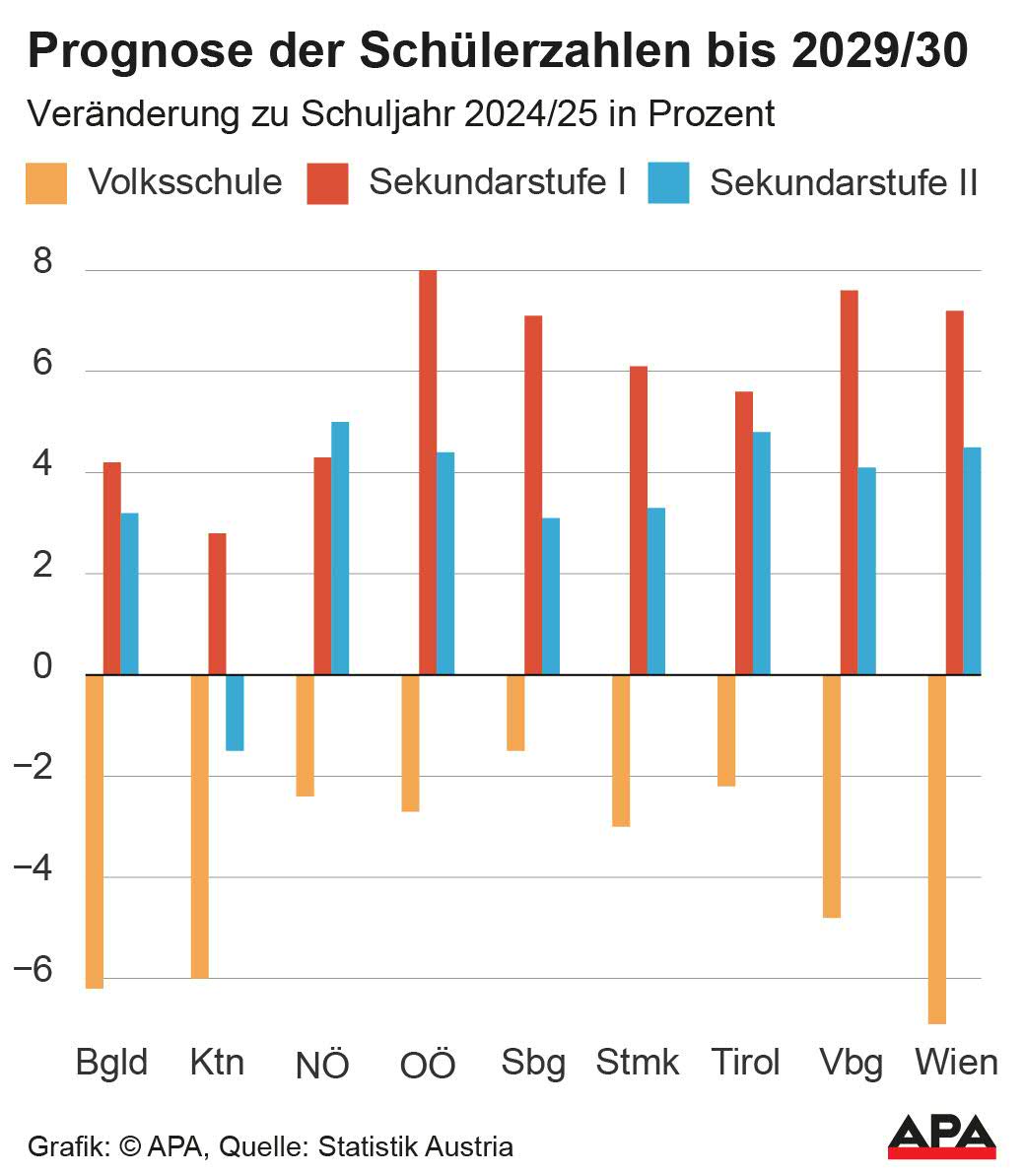 Education Minister Christoph Wiederkehr (NEOS) expressed optimism in light of the expected development. "The expected medium-term decline in student numbers will help alleviate the teacher shortage and ease the care situation in schools," he said in a statement to the APA.