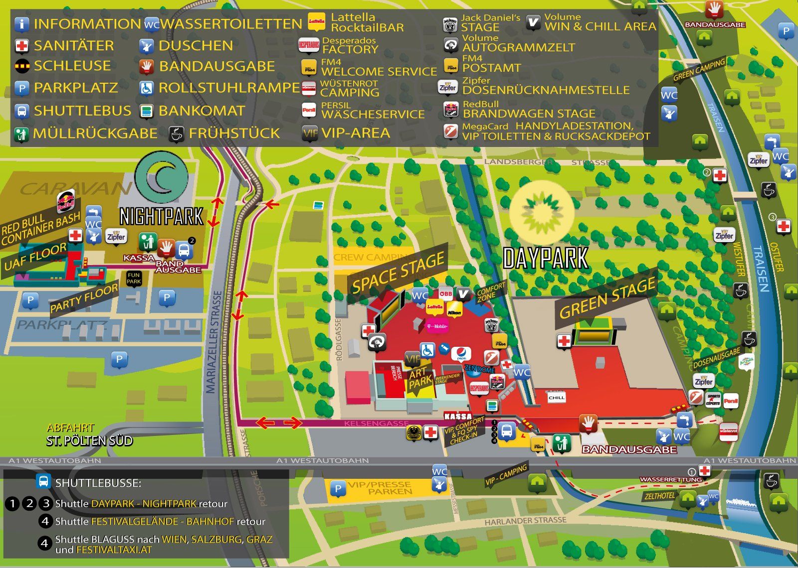 • Weitere Möglichkeit: Eine weitere Möglichkeit für die Anreise zum Frequency Festival, bietet sich mit dem Festivaltaxi oder dem Bus. Von Wien geht es direkt zur Bushaltestelle am Gelände.