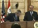 Bush war zu einem Abschiedsbesuch in Bagdad und stellte sich auf einer Pressekonferenz mit dem irakischen Ministerpräsidenten Nuri al-Maliki Journalistenfragen.