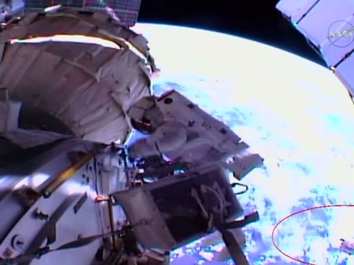 Kameras an der ISS hielten fest, wie eine Tasche mit einem Schutzschild gegen Weltraummüll in den Weiten des Weltalls verschwand. Warum sich das 8 Kilogramm schwere und etwa 1,5 Meter große Teil selbstständig machen konnte, wurde zunächst nicht bekannt. Eine Gefahr für die Astronauten und für die Raumstation habe aber nicht bestanden, teilte die NASA mit.