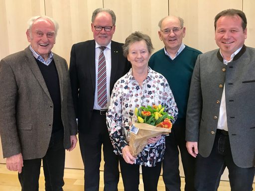 Sigrid Weingrill wurde für die 20 Jahre Treue geehrt. Die Ehrengäste Bürgermeister Mag. Harald Witwer, Obmann des Seniorenbundes Werner Huber, Bezirksobmann Armin Spalt gratulierten zum Jubiläum und wünschten Sigrid Weingrill alles Gute. Ebenso der gesamten Versammlung und dem Vorstand, für die gute Vorbereitung der Versammlung. Zu guter Letzt wünscht der Obmann allen Mitgliedern: “Net lugg`lo!“