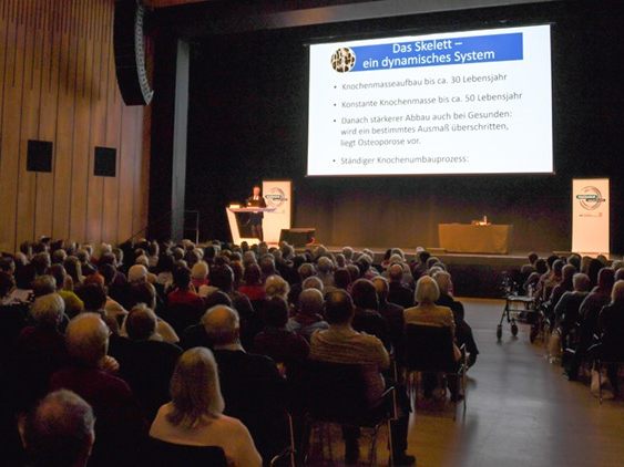 So viel wurde zu diesem Thema schon gesagt und geschrieben, und doch scheint der Informationsbedarf immer noch groß. Das zeigte auch der MedKonkret-Vortrag, in dem Primar Günter Höfle vom Landeskrankenhaus Hohenems über Risikofaktoren, Vorbeugung und Therapie bei Osteoporose sprach. Gut 500 Besucher kamen ins Montforthaus, um den Worten des Experten zu lauschen. Sein Appell: „Jeder kann selbst viel für die Knochengesundheit tun.“ Kommt es doch zu einer Osteoporose, stehen wirksame und inzwischen leichter anwendbare Medikamente zur Verfügung. Allerdings beginnt Knochengesundheit schon im Kindesalter. „Bis zum 30. Lebensjahr baut sich Knochenmasse auf, bis 50 bleibt sie konstant, danach beginnt der Abbau, auch bei Gesunden“, erklärte Günter Höfle.