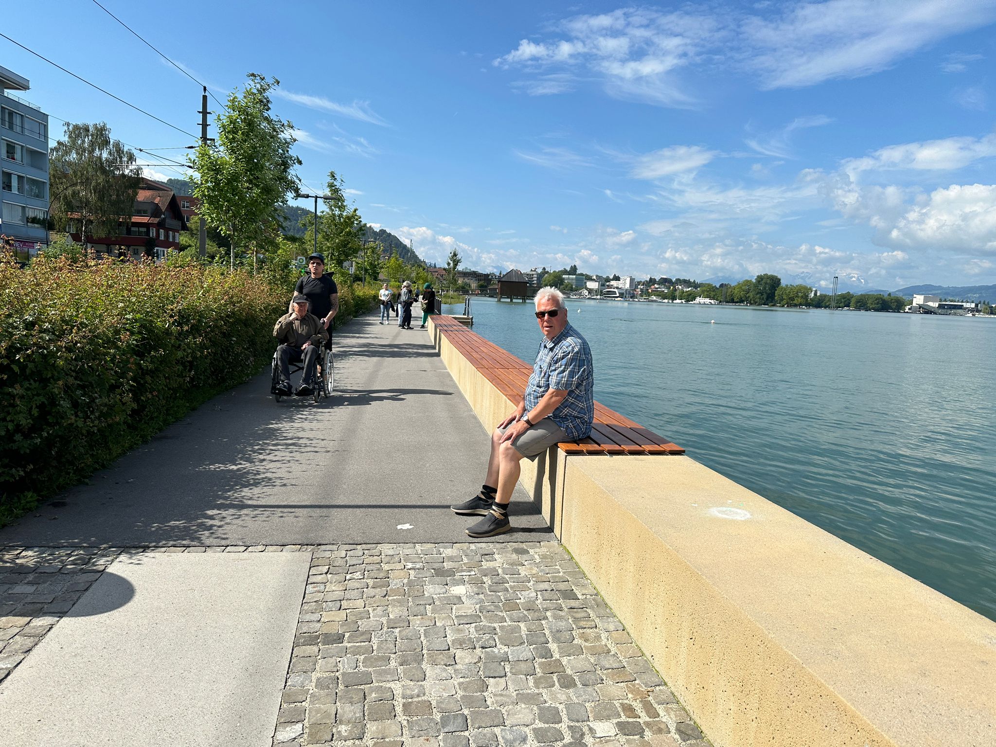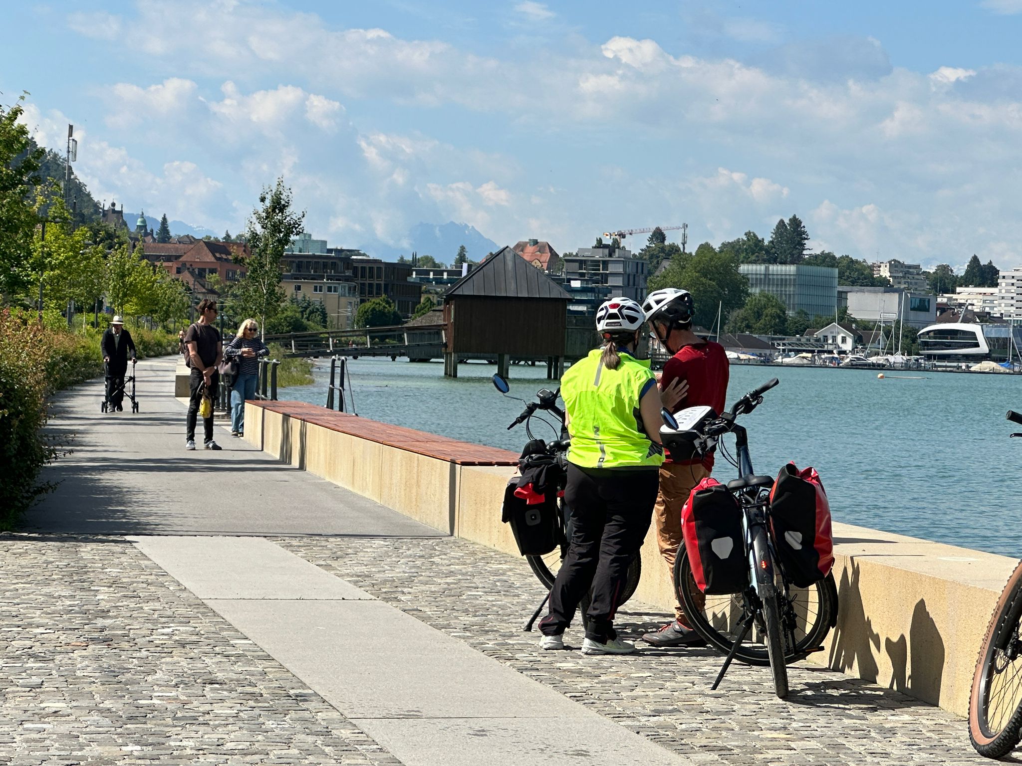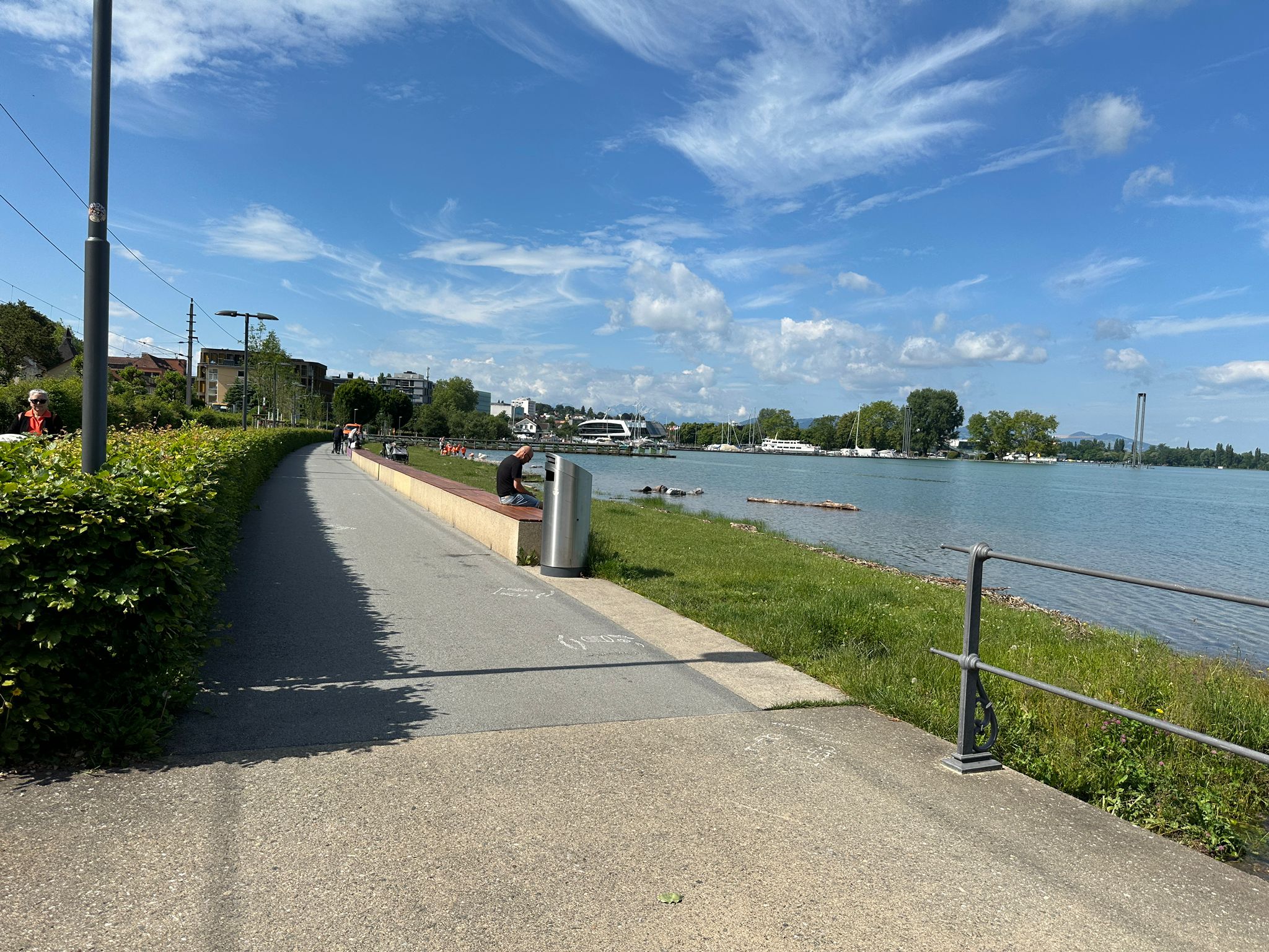 Walter Österle aus Bregenz ist öfters am Bodensee: "Für ältere Menschen ist es angenehm, wenn sie nicht so weit bis zum See hinunterlaufen müssen. Aber jetzt ist es genug mit dem vielen Wasser. Ich habe das Gefühl, dass da noch einiges auf uns zukommt. Die Wetterprognosen für die kommenden 14 Tage sind nicht so rosig. Ich kann mich noch an das Hochwasser 1999 erinnern, da war der Wasserstand bei 567 Zentimeter. Hoffen wir mal, dass es diesmal nicht so weit kommt. Ich bin sehr oft mit dem Fahrrad an der Pipeline oder gehe hier schwimmen."