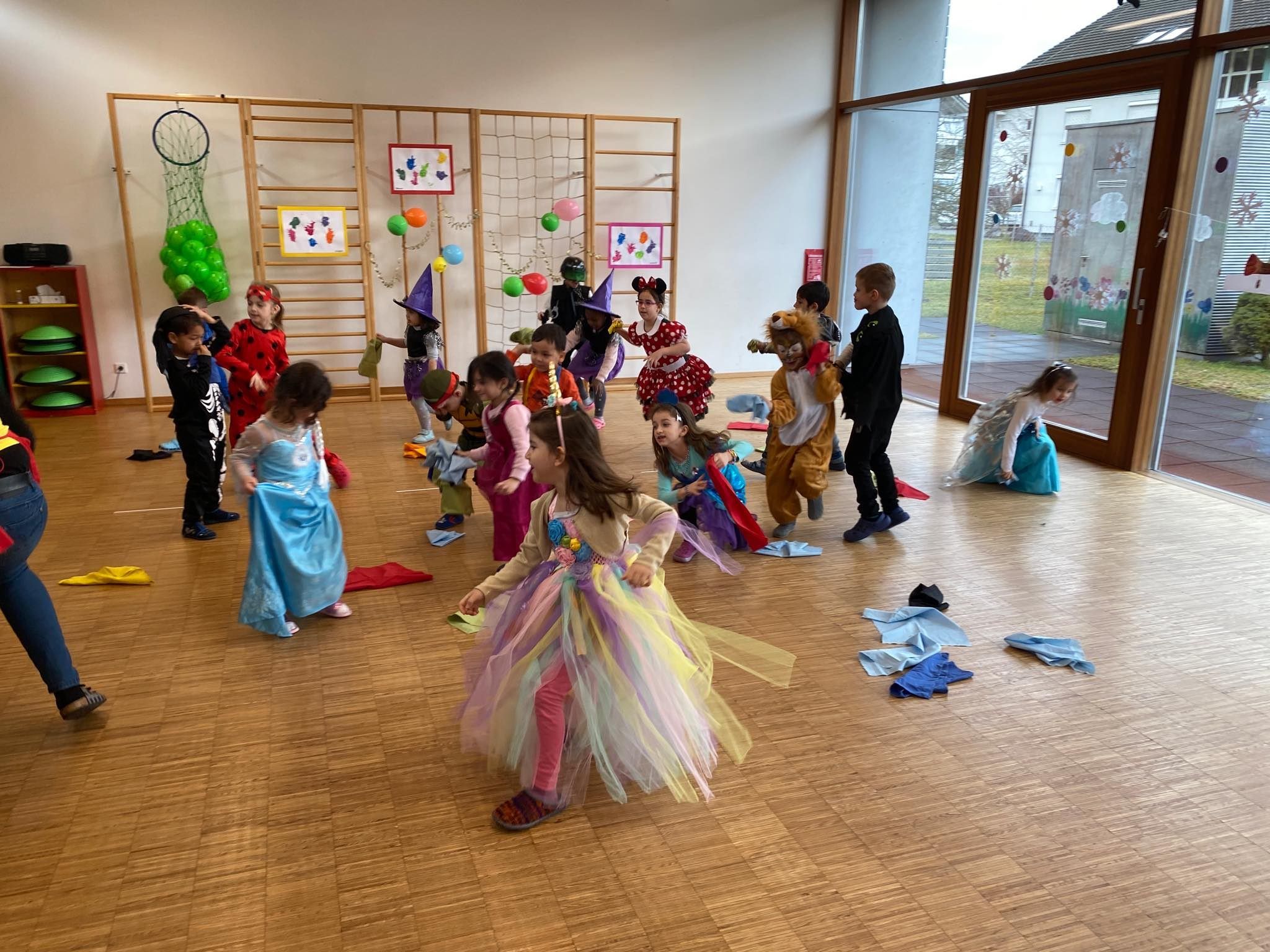 Am Rosenmontag und Faschingsdienstag wurde im Bewegungskindergarten Am Sunnabühel, kräftig gefeiert - mit Tänzen, Spielen und Kasperltheater.