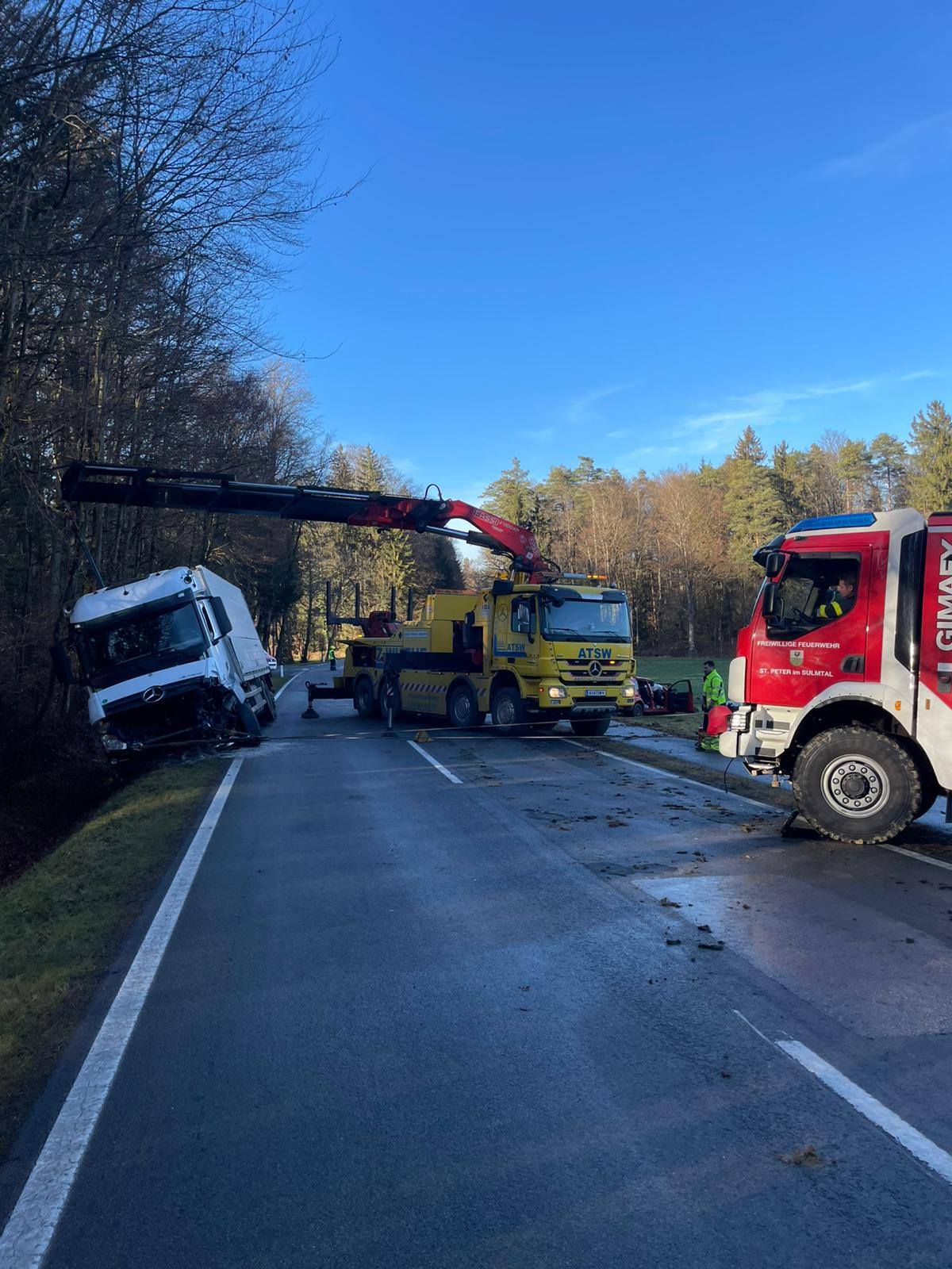 Der Unfall passierte bei St. Peter im Sulmtal gegen 11.00 Uhr, als der junge Mann vermutlich wegen überhöhter Geschwindigkeit auf die Gegenfahrbahn der Sulmtal Bundesstraße geriet. Der Lkw-Lenker aus Slowenien versuchte noch auszuweichen, konnte die Frontalkollision aber nicht mehr verhindern. Der Lastwagen des 45-Jährigen rutschte dabei in den Straßengraben.